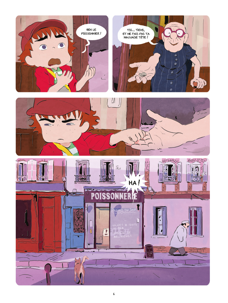 Mais Rony Hotin, c’est surtout un style bien à lui, qui a déjà fait ses preuves dans le monde de l’animation, et une efficacité et des couleurs redoutables, incisives. Un mélange qui ne peut mieux porter cette histoire qui débute fort bien entre les peurs de l’enfance, son insouciance et bientôt la terrible épreuve. On adhère totalement.