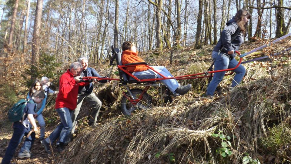 Fin juillet 2013, le soleil brûlant de l’été chatouille et réchauffe la Manche, étendue infinie et reposante. Serge, posé sur un rocher, les pieds dans les vagues scintillantes, est paisible. La côte d’Opale se livre et se dessine sous ses yeux. Le vert est éclatant et la falaise abrupte. Paysage de rêve pour semaine de rêve. Ils sont vingt-quatre à participer à l’aventure. Une aventure humaine, puisque se côtoient personnes handicapées et jeunes dans la force de l’âge. Son nom ? Extra-Muros, le projet d’une vie sans barreaux, l’idéal concrétisé de Serge. Ainsi, plusieurs fois par an, la bande à Serge part à la conquête des merveilles de la nature, à la côte ou à la montagne, sans avoir peur des chemins escarpés. « J’ai acheté des ‘‘joëlettes’’, ce sont des fauteuils tout-terrain, le fauteuil en lui-même repose sur une roue à suspension et il y a deux brancards, un à l’avant, un à l’arrière pour les deux personnes poussant et tirant la personne à mobilité réduite. » explique Serge, passionné. « Pour en acheter, il faut des pépites et comme je donne tout mon temps dans mon ASBL, je suis chômeur. Mais je reçois des dons et des aides notamment par la Fondation Roi Baudouin. Mais c’est unique, c’est une expérience de solidarité qui sort des sentiers balisés, au sens propre comme au figuré. Car seules les joëlettes permettent aux personnes handicapées de s’attaquer à des sentiers aussi escarpés. » Des moyens de locomotion qui changent la vie et avec lesquels Serge a eu un premier contact lors d’un job au Village N°1 de Braine-L’Alleud et qui, comme la guitare avant, a réveillé chez Serge des envies. Dans cette aventure avant tout humaine, il entraîne avec lui des jeunes de tous les horizons, des classes qui partent en retraite…