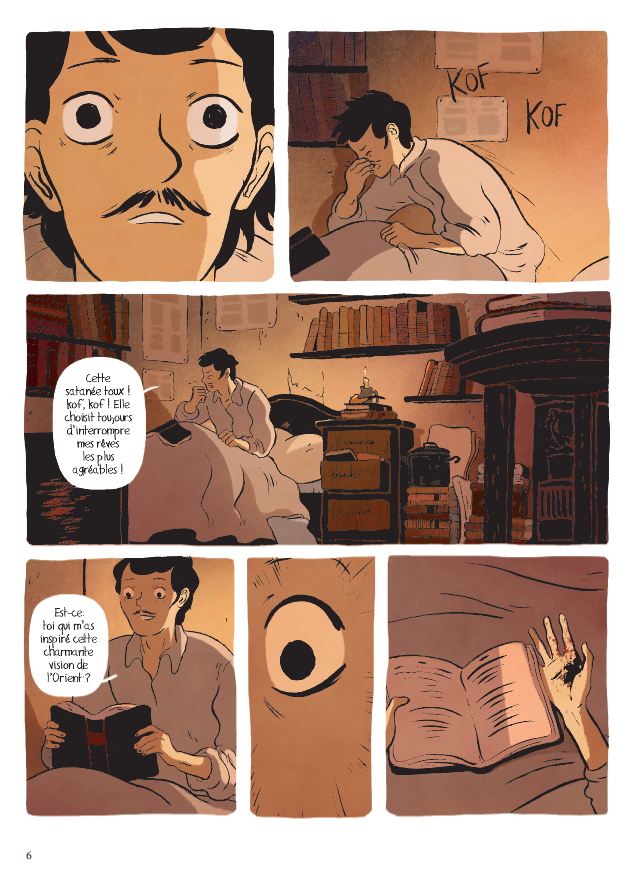 Ne cherchez pas les pyramides, le Sphinx et autres trésors de l’Égypte Antique, il n’y sont pas. Une saison en Égypte est plus une épopée romantique qu’autre chose, un huis clos amoureux dans les rues du Caire puis dans un désert assoiffant et meurtrier. Claire Fauvel, pour cette toute première bande dessinée, suit ses personnages plus qu’elle ne les cale dans un décor imposant et référentiel. L’Egypte est le contexte plus que le sujet. Pourtant, passé cette rectification, on ne peut qu’apprécier le dessin de Fauvel et surtout une lumière parfaite (en analogie à la recherche de lumière du peintre Payan).
