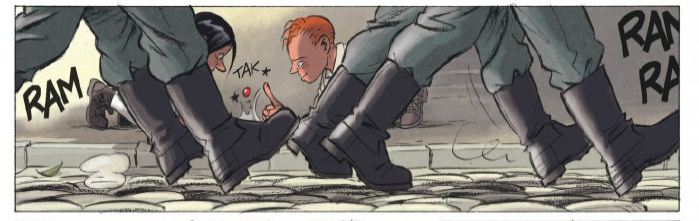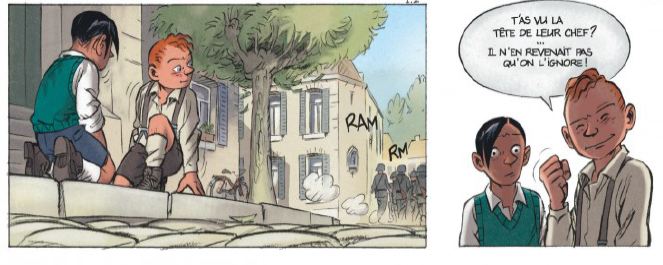 La scène d’introduction, quand les enfants jouent aux billes et qu’ils voient pour la première fois des Allemands entrer dans la ville, c’est inspiré du souvenir de mon papa. Ça ne s’est pas passé comme dans la BD mais ça l’a marqué de la même manière. Cette histoire est la somme de plein d’influences indirectes.