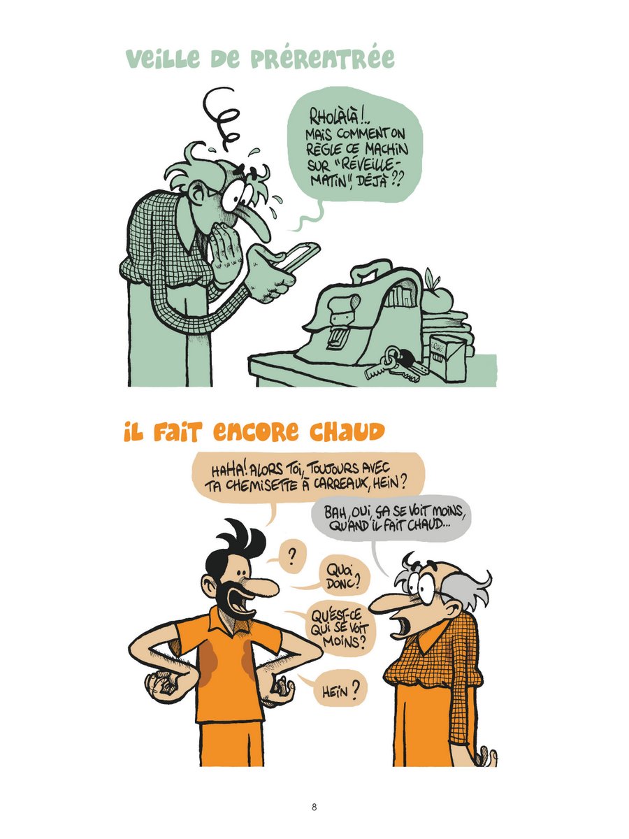 Le processus du gag est mystérieux, et il n’est pas le même par exemple dans Une année au lycée ou dans Guide sublime, parce que ce sont des univers et des tons différents. Mais je crois qu’il y a nécessairement, à un moment, une forme d’abandon : il faut se laisser aller à partir d’une situation vers ce qu’elle peut générer de grotesque (en fait tout ce qu’on essaie d’éviter dans la vie quotidienne).