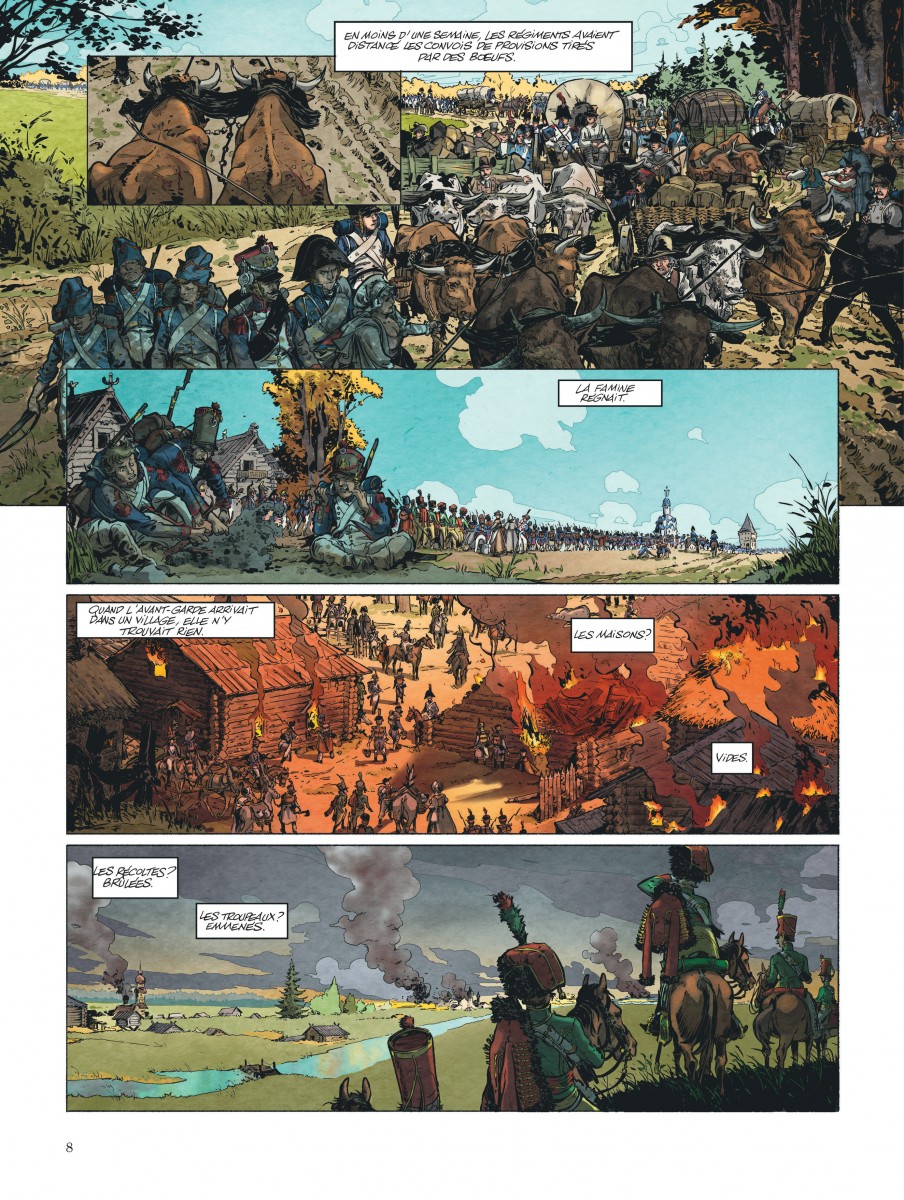 Ils n’en ont pas fini avec Napoléon! Après avoir adapté (et remporté) La Bataille, fresque puissante et impressionnante de la Bataille d’Essling, Frédéric Richaud et Ivan Gil continuent de suivre à la trace le Petit Caporal désormais en pleine Bérézina. Enfin, pas encore, car pour l’instant, l’Empereur marche sur Moscou, déjà vide mais bientôt fournaise.