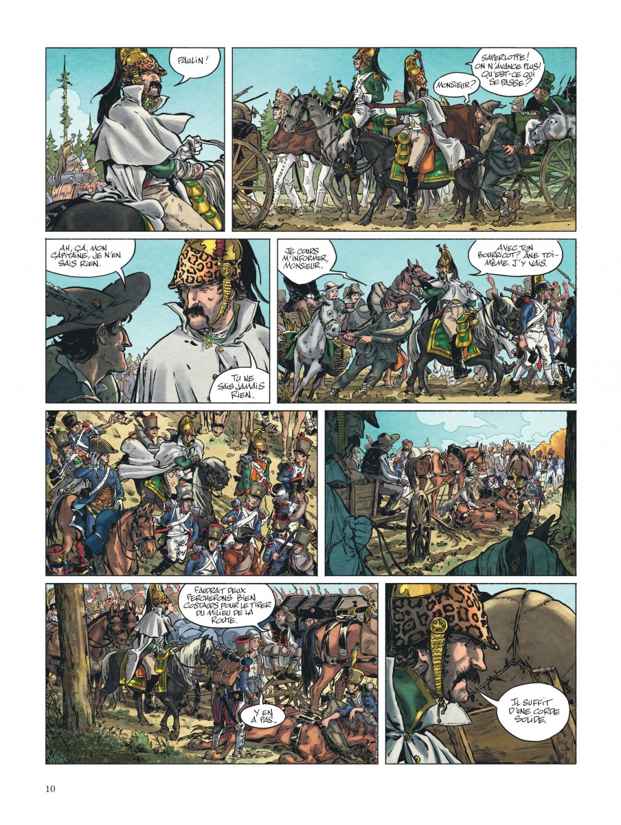 Peut-être encore plus maîtrisé que La Bataille, Bérézina continue à donner du sang neuf aux récits des épopées napoléoniennes. Et si, pour le moment, l’ennemi est bien plus insidieux, inflammables et incontrôlable, notre petit doigt nous dit qu’une fois sorti de la fournaise, les troupes napoléoniennes ne sont pas au bout de leurs surprises. De neige de cendres en neige tout court! À distance, deux cents ans plus tard, on les suivra de bon coeur de lecteur.
