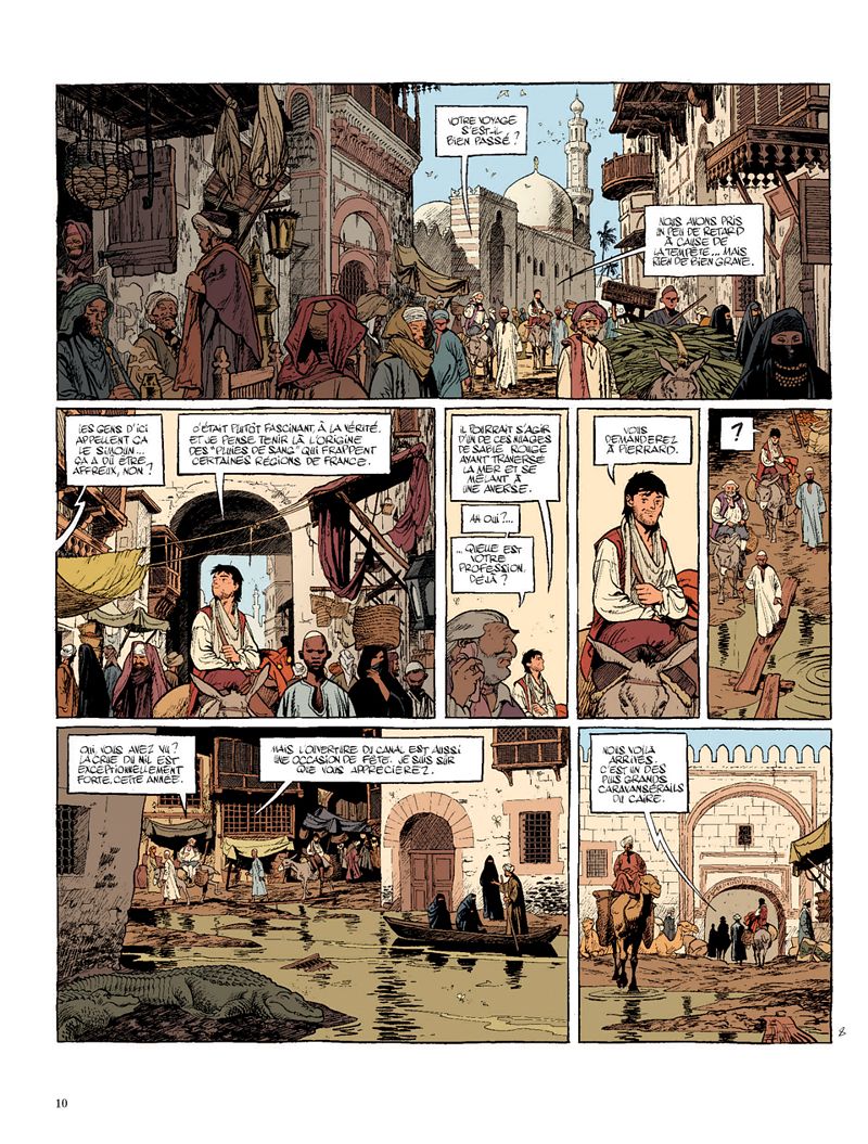 Et cette volonté des auteurs entrent en collision avec l’évolution du trait de Matthieu Bonhomme, déjà très habile cependant. Dans ces cinq albums, on sent à quel point la vision du dessinateur a pu peser sur la confection de ces histoires. Fabien l’avoue même dans la l’interview qui prolonge cette intégrale: « Je n’étais pas préparé à ce que le dessinateur intervienne autant. (…) Le Marquis est le résultat de ces interactions qui existent entre nous« . Une complémentarité qui crée l’alchimie entre des planches où les textes sont bien présents et d’autres quasi muettes où Matthieu laisse toute l’expression à ses cases et ses dessins. Déjà à ce moment, Bonhomme a un sacré don pour faire baigner le lecteur dans ces atmosphères qui n’augurent rien de bon. Du fracas des flots ou des brumes bretonnes, de la froideur d’une montagne hantée par un monstre sanguinaire à cette Égypte qui encourage à être toujours sur ses gardes, rien ne résiste au talentueux dessinateur.