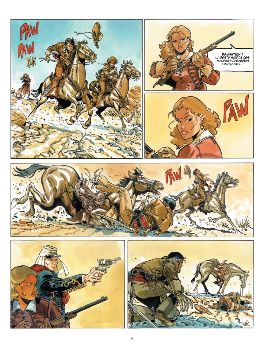 J’avais envie d’épopée en costumes. Aussi, j’ai proposé à Yann de réaliser une aventure épique sous le premier empire, en Espagne. Le décor, la guérilla, les hommes en uniformes fatigués, la violence, etc. Yann, fin renard, m’a proposé de changer de Napoléon en faisant un bond de 50 ans dans le XIXème siècle. Napoléon III avait envoyé un corps expéditionnaire au Mexique pour tenter de créer un empire catholique qui aurait contrebalancé la puissance montante des Etats-Unis alors en pleine guerre civile.