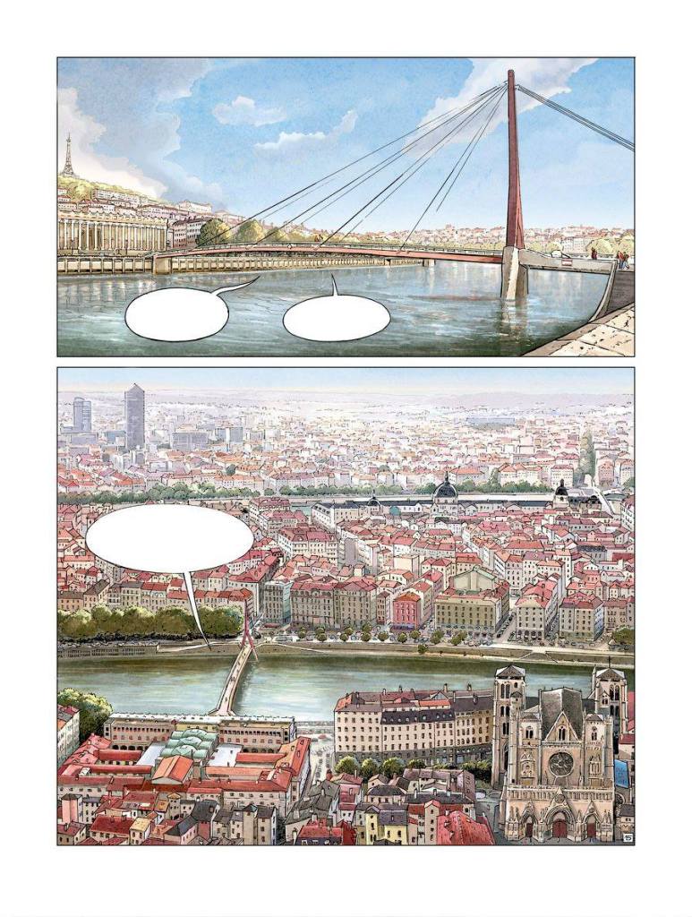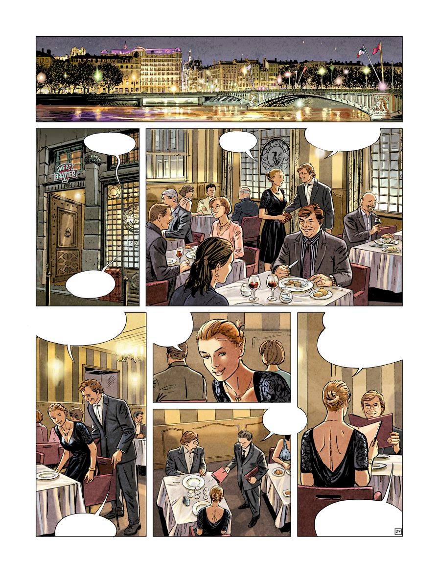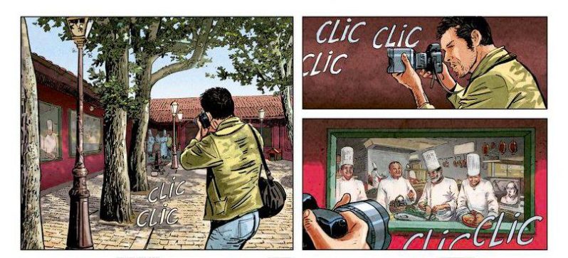 À vrai dire, je n’ai jamais été à Lyon, et si j’ai entendu parler de ses bouchons, c’est par la voix de gourmets (à l’alimentation comme à l’imitation) de Laurent Gerra. Tout comme, je n’ai jamais lu les romans de Noël Balen et Vanessa Barrot. Je ne peux donc que juger cet album concocté par Raven, Chetville et Antoine Quaresma. Et de la toque du chef surgit une plutôt bonne surprise. D’une part parce que cette enquête qui prend formes et cases joue les greeters de luxe. Le lecteur devient touriste et Chetville se sert de son trait comme guide touristique pour explorer quelques facettes de ce Lyon sous tous les angles. Antoine Quaresma y joue la sobriété des couleurs tout en donnant impact et contrastes aux dessins de Chetville. On voit mais on lit aussi quelques infos disséminées pour mieux comprendre l’ambiance de la ville et l’importance capitale que revêtent les fumets alléchants d’un bout à l’autre de l’ancienne capitale des Gaules.