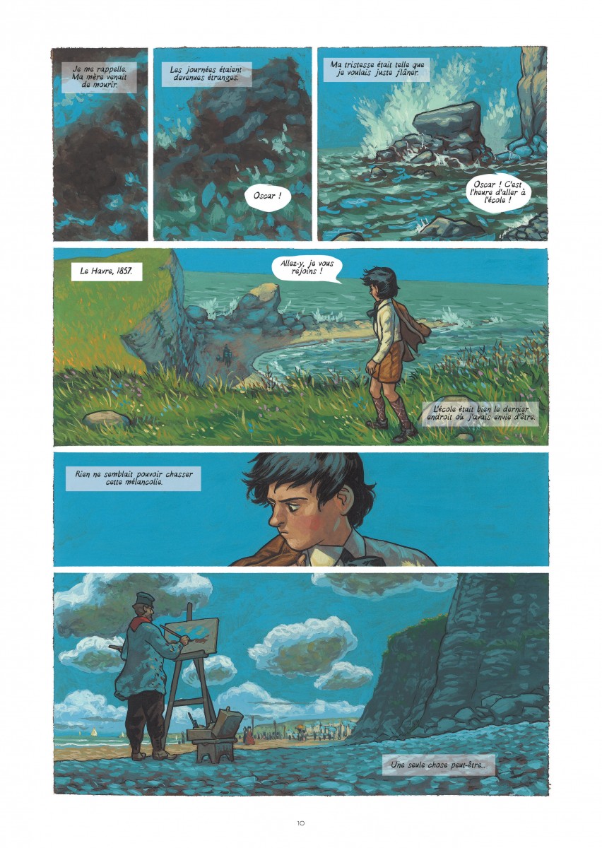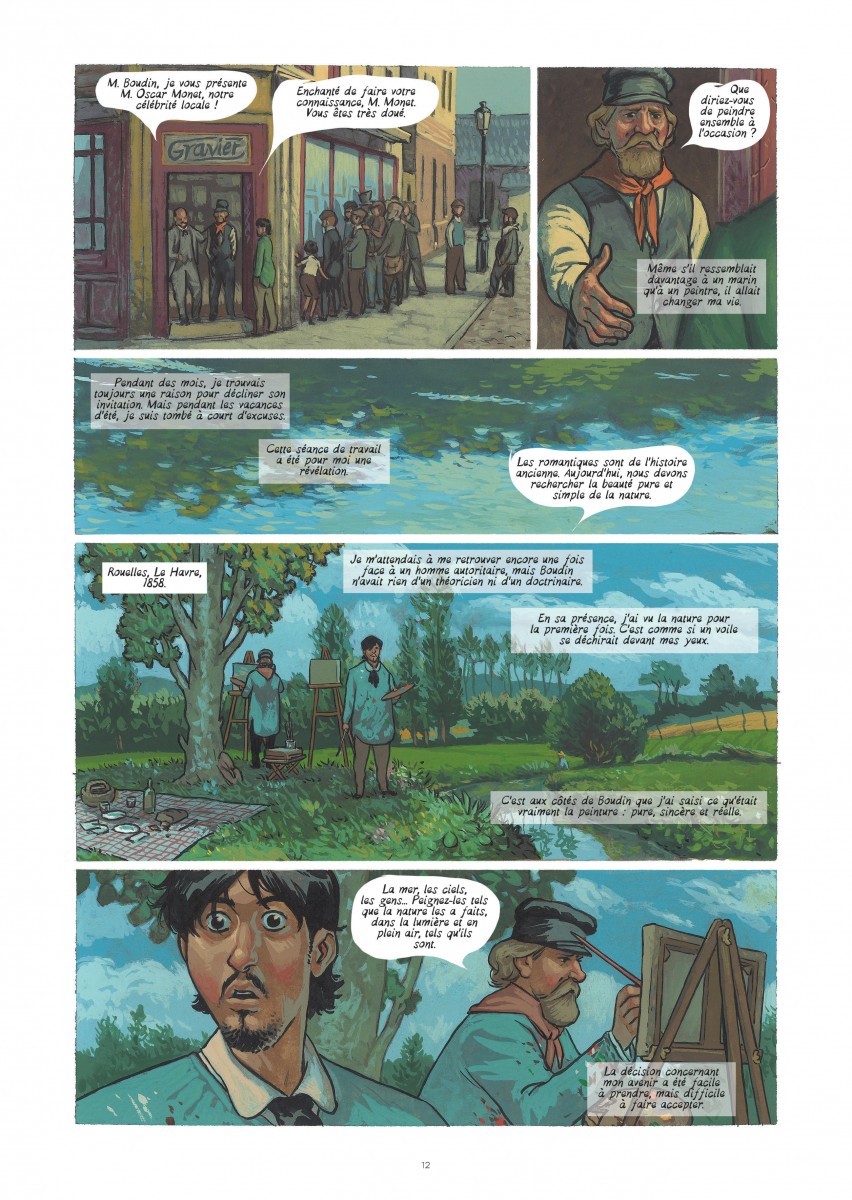 Monet, sacré Claude Monet. On pourrait tirer encore et encore sur sa barbe blanche fort reconnaissable, qu’on ne saisirait jamais qu’un petit bout de l’âme de ce peintre mémorable. Ça tombe bien, Salva Rubio et Efa n’ont pas prétention de tisser une toile exhaustive de la vie et de l’oeuvre de Monet.
