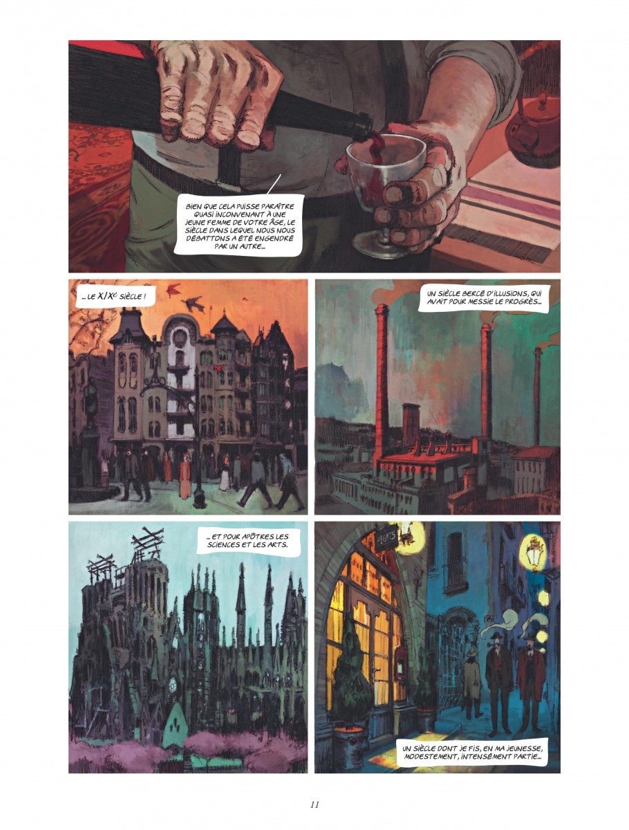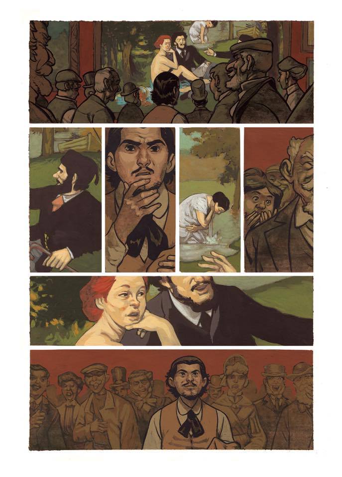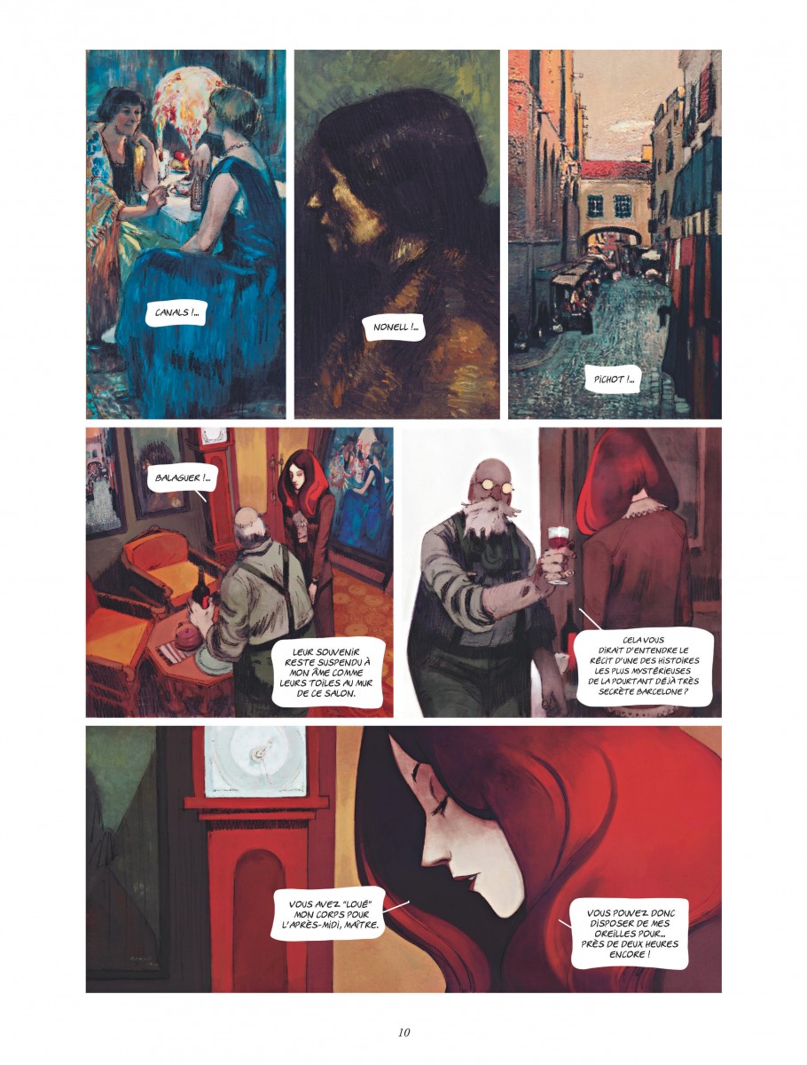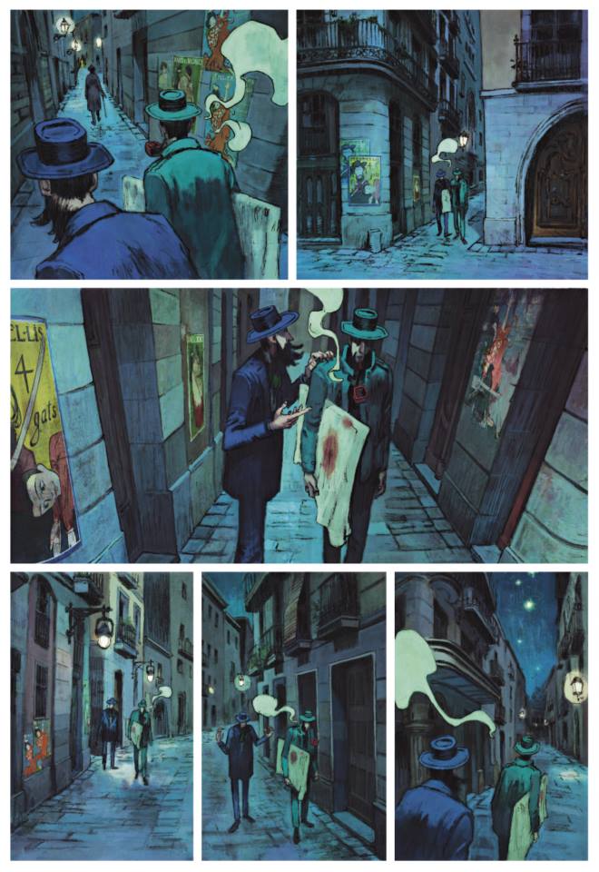 Un peu plus loin sur la vaste palette du Neuvième Art, nous restons dans la peinture mais en changeant totalement de genre. Car si Rubio et Efa se sont servis des grandes lignes de la biographie de Monet, le tandem (déjà marquant sur les Trois Fruits ou La peau de l’ours) Zidrou-Oriol ont plongé dans l’ombre de celle de Vidal Balaguer sans en bouger les forces motrices. Car oui, Vidal Balaguer est une chimère, un mystère entier à lui tout seul mais catalysant ce que le Barcelone de 1899 offrait ou retirait à ses peintres.