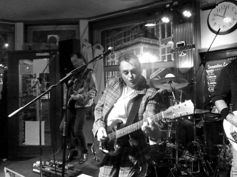 Yke a sorti son complet à carreaux, petit frère rouge et noir de celui que porte souvent Jock Mc Donald des Bollock Brothers et c’est parti pour un set énergique et revigorant qui replonge les plus anciens dans une époque ou « No Future » s’affichait sur mes murs, et où les épingles à nourrice s’arboraient fièrement pendues aux lobes percés des oreilles.