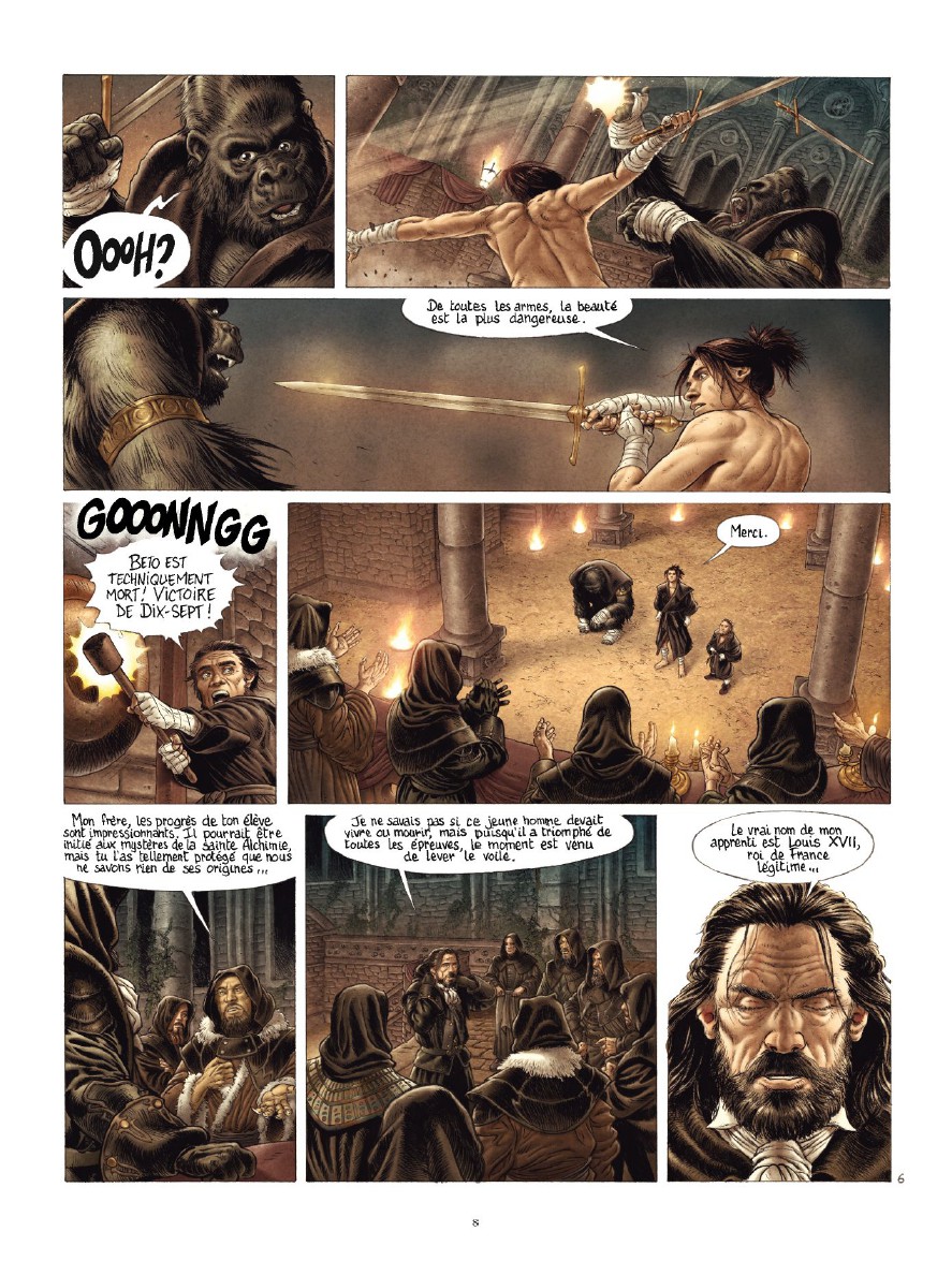 Résumé de l’éditeur : Fin du XVIIIe siècle. Dans un monastère au Nord de l’Espagne, se dissimule le temple sacré des Chevaliers d’Héliopolis : une assemblée d’alchimistes immortels et coupés du monde. Alors que le disciple Dix-sept s’apprête à compléter sa formation et à intégrer l’ordre, son maitre Fulcanelli dévoile aux autres chevaliers le terrible secret de ses origines. Dix-Sept est en réalité le fils caché de Louis XVI et de Marie-Antoinette : le roi de France Louis XVII ! Héritier de cette destinée, le jeune homme va-t-il réclamer le trône qui lui est dû ou rester dans l’ombre, fidèle aux préceptes millénaires de l’Alchimie ?