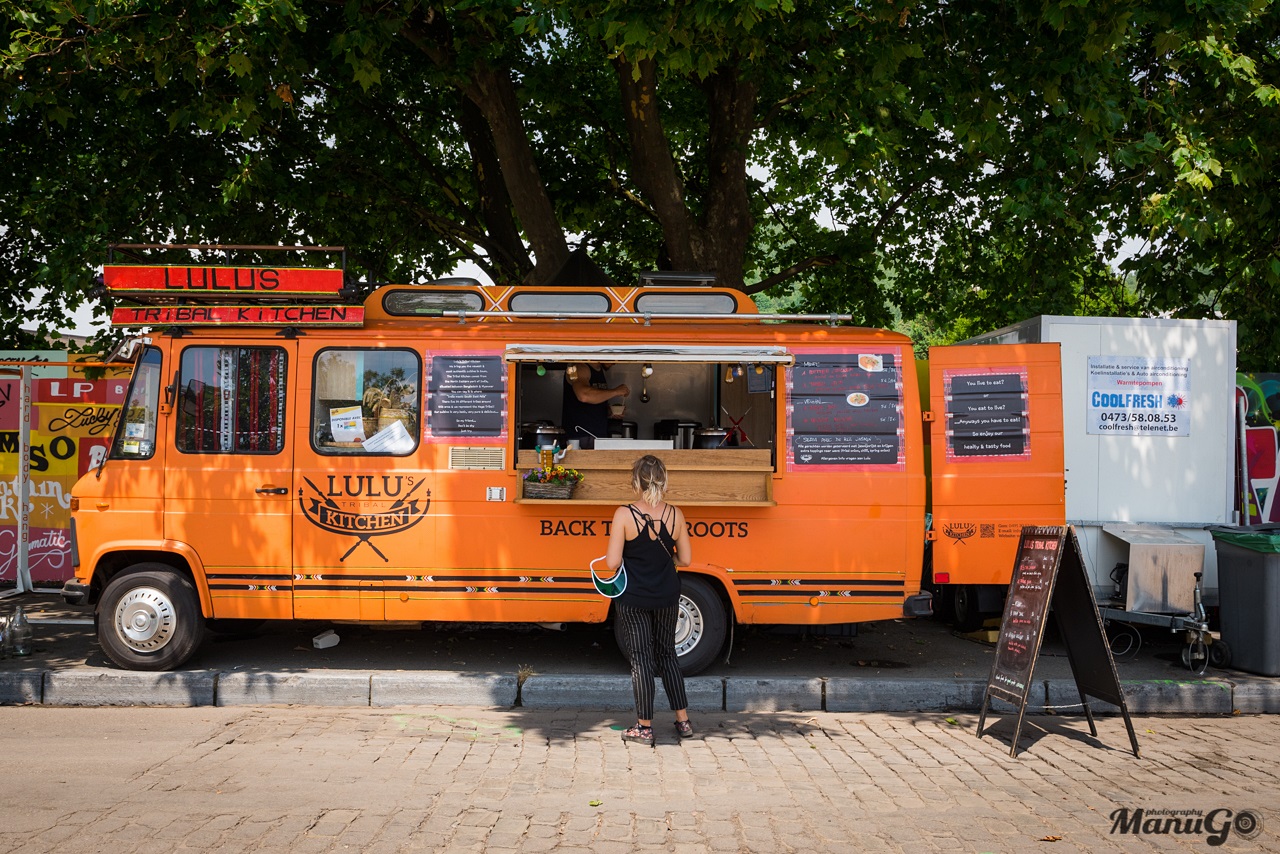 Dimanche 9 juillet, mon Nikon et moi-même sommes prêts pour affronter cette seconde journée aux Ardentes sous une chaleur encore plus accablante. Il est 13h15 et je profite de ce petit laps de temps avant le premier concert pour prendre quelques clichés dans l’allée principale encore désertée par les festivaliers. Un moment de quiétude avant la déferlante humaine et musicale.