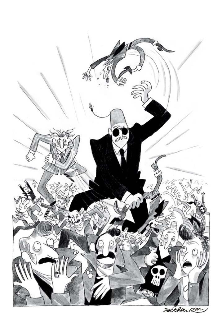 Des fan fictions sur Justin Bieber ou les One Direction, il y en a légion, souvent inintéressantes. Mais si on avait du prendre les paris, sans doute, n’aurions-nous jamais misé sur Triggerfinger. Encore moins pour mettre en pratique le syndrome de Stockholm ! C’est dire si Jean Chauvelot et Zoé Thouron réussissent, d’emblée, leur surprise du chef. Et, de bout en bout de ces 120 planches (avec pré-générique et post-générique ainsi que des bonus), cette épopée bariolée et pourtant noir sur blanc. Jean et Zoé ont particulièrement saisi toute la portée et la folie des Triggerfinger et, assortie à la leur, s’en servent comme locomotive bien rodée pour renverser tout sur leur passage, en humour, en frayeur et en trip complètement salvateur.