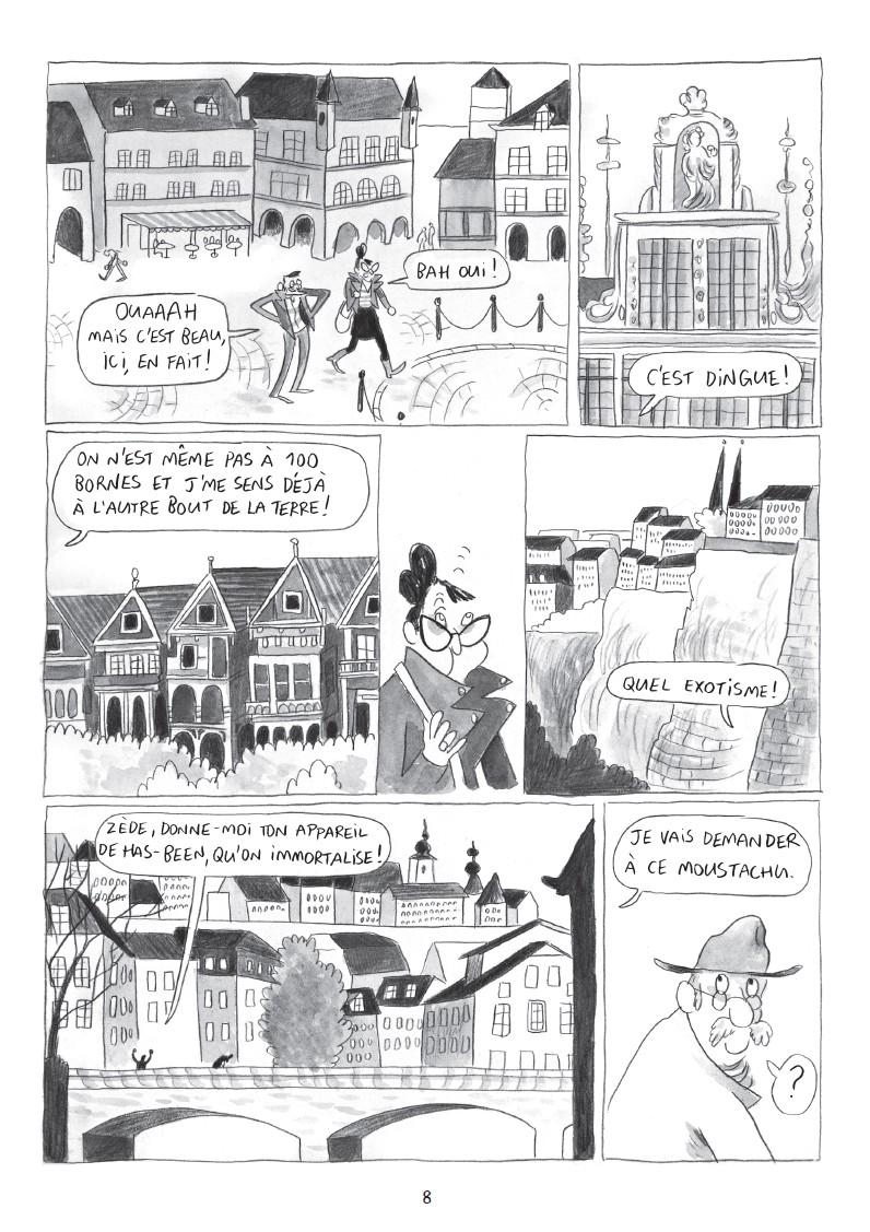 C’est ainsi que nous retrouvons Zède et Ji en voiture pour le carrefour européen et le concert de Freakytiger, band rock adulé par une armée de groupies. Zède est excitée comme une puce et ne jure que pas Ruppert Colt (ou peut-être est-ce Ruben Block?), le charismatique leader et guitar hero du groupe. Ji, lui, encaisse le coup : ce qu’il voulait être un simple aller-retour dans le pays voisin risque bien de se transformer en week-end à suivre le rythme essoufflant et épuisant de Zède. Bref, la décontraction et le délassement promis sont à géométrie variable pour les deux héros. Et ce n’est que le début… Avant le rappel, Ji s’évanouit. Sale affaire pour Zède qui ne veut rien rater du spectacle mais qui vient quand même en aide à son compagnon d'(més)aventure.