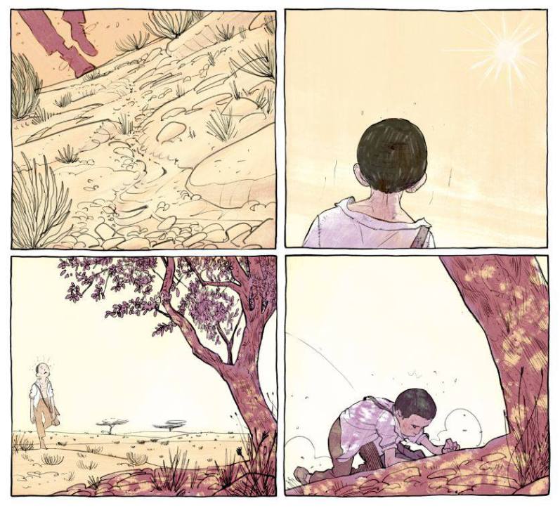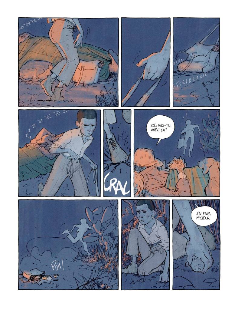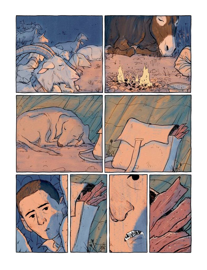 Oui, j’ai été fasciné par le contexte où a lieu la trame : la plaine infinie avec ses levers et tombées du jour, son soleil implacable, ses conditions extrêmes. Autant de possibilités graphiques qui m’attiraient beaucoup. Sans oublier la jolie relation qui affleure entre le garçon et le chevrier, le plus important de l’histoire sans doute, et ce pour quoi j’ai dû mettre le plus d’emphase à l’heure de faire l’adaptation.