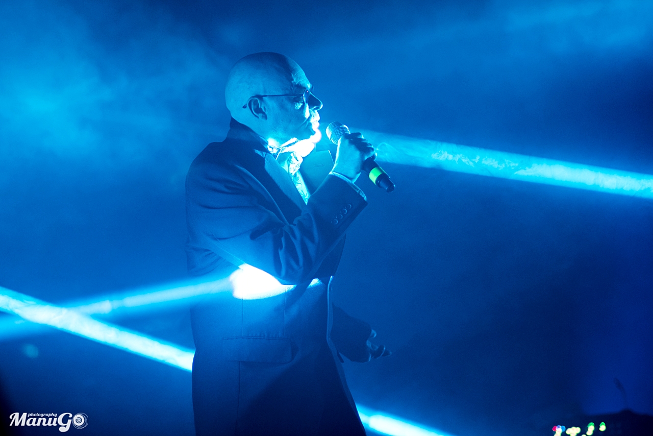 Place ensuite aux SISTERS OF MERCY. Le band légendaire attaque avec » More », suivi de » Ribbons ». Habituellement plongés lors de leurs prestations scéniques dans d’épais nuages de fumée dont ils s’échappent de courts moments, les membres du groupe ont cette fois remplacé les fumigènes par un light show qui forme un voile de lumière laissant apparaître leurs ombres de manière furtive. On ne se refait pas.