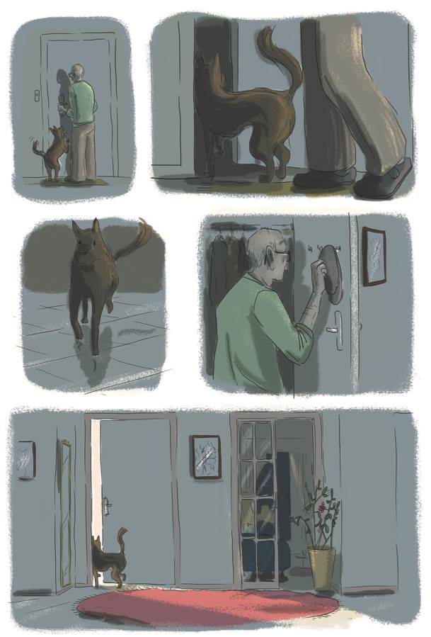 Les trois personnages sont principaux. Elsa n’est pas plus l’héroïne que les autres. J’ai voulu bien marquer cela, même si on a encore tendance à lui donner plus d’importance qu’aux deux autres, peut-être parce qu’elle appartient au même genre que le mien. Je voulais démarrer avec un vrai temps pour chacun, qu’on apprenne à les connaitre. Ensuite, il a fallu trouver des chocs, des lieux de croisement… Le chien y a été d’une grande aide.