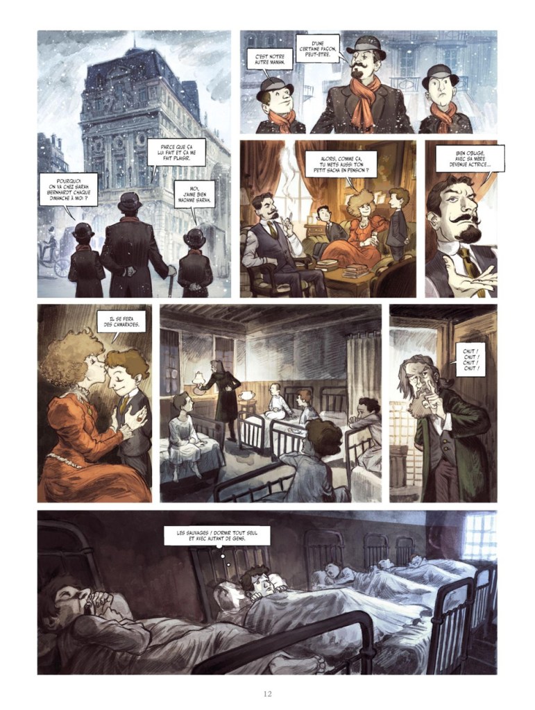 L’éclat de cet homme moderne, les deux auteurs peinent à rivaliser avec lui. L’histoire se suit mais là où l’Italien Paolo Martinello nous séduisait sur la couverture, il pioche un peu plus tard, sans parvenir à trouver la force de sortir de ce qui se contente d’être finalement une biographie convenue, sobre et un peu terne malgré quelques cases et des premières planches fascinantes, fortes en ambiance. Et quand on se frotte à un virtuose scénique, ça ne pardonne pas. « Citer les pensées des autres, c’est regretter de ne pas les avoir trouvées soi-même », mettait pourtant en garde l’homme dont il est question ici.