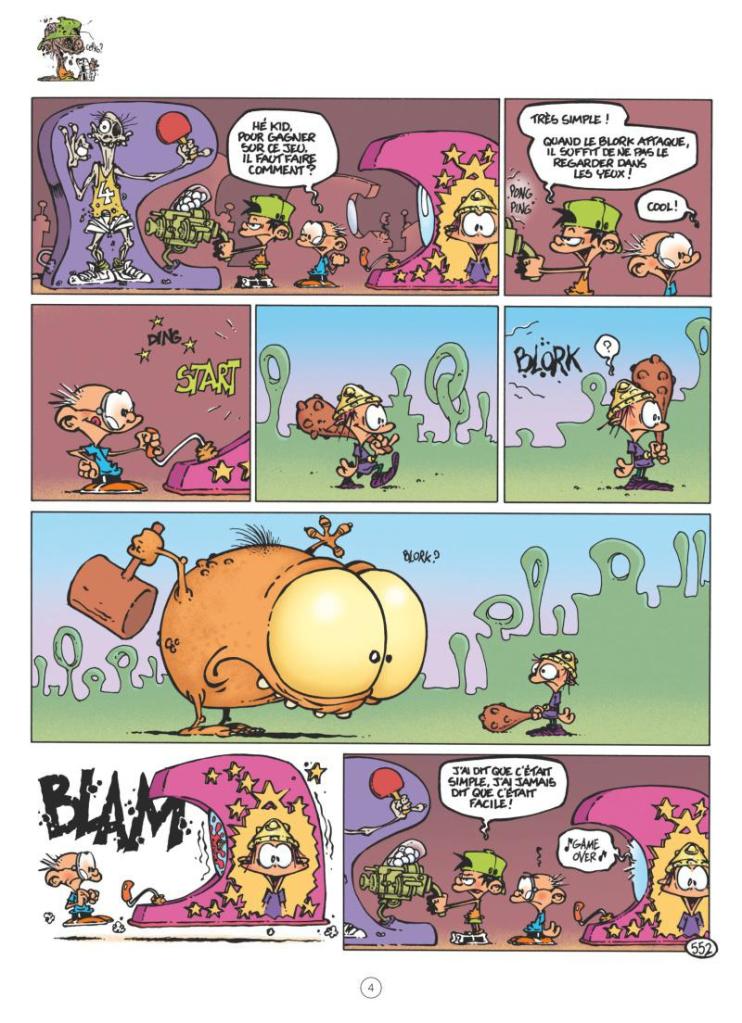 La preuve, le temps a passé, ils y sont toujours et s’ils ont bien tenté d’évoluer (bon s’ils s’y prennent comme ils tentent d’entrer au cinoche pour un film qui n’est pas de leur âge, on comprend que ça n’ait pas marché), Kid et ses amis n’ont rien perdu de leur ferveur à dézinguer des Blorks, pitoyables joueurs qu’ils sont. Car en 15 tomes de Kid Paddle (et 16 de Game Over, donc), nos zéros n’ont pas vraiment été flamboyants face aux créatures hideuses et bébêtes sorties de l’imagination sans fond de Midam. On pourrait presque compter sur les doigts de la main les méchants que cette bande de loosers a pu anéantir. Tout cela n’est pas brillant mais quel plaisir coupable on prend toujours à les voir se faire ratatiner.