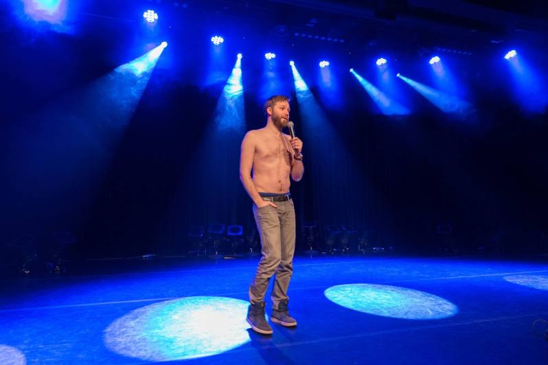 C’est la seule véritable blague de mon spectacle. L’ensemble de mon show est composé d’histoires drôles et de comique de situations.