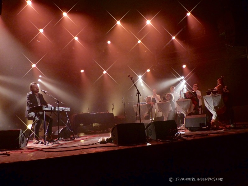 Durant septante cinq minutes d’une intensité remarquable Koen Renders, entouré du multi instrumentiste-percussionniste et touche à tout atypique Gerrit Valckenaers et de The Late Chamber Players , quatre cuivres et quatre cordes parmi lesquelles on reconnait au violoncelle l’infatigable et talentueux Jean-François Assy ( Bertier, Christophe, Daan, The Cranberries, Bashung… ) passera sans souci alternativement du piano à la guitare acoustique. Koen nous promène dans son univers particulier au rythme d’une pop délicieuse sorte de fusion entre E.L.O, The Divine Comedy, Supertramp avec un zeste de William Sheller.