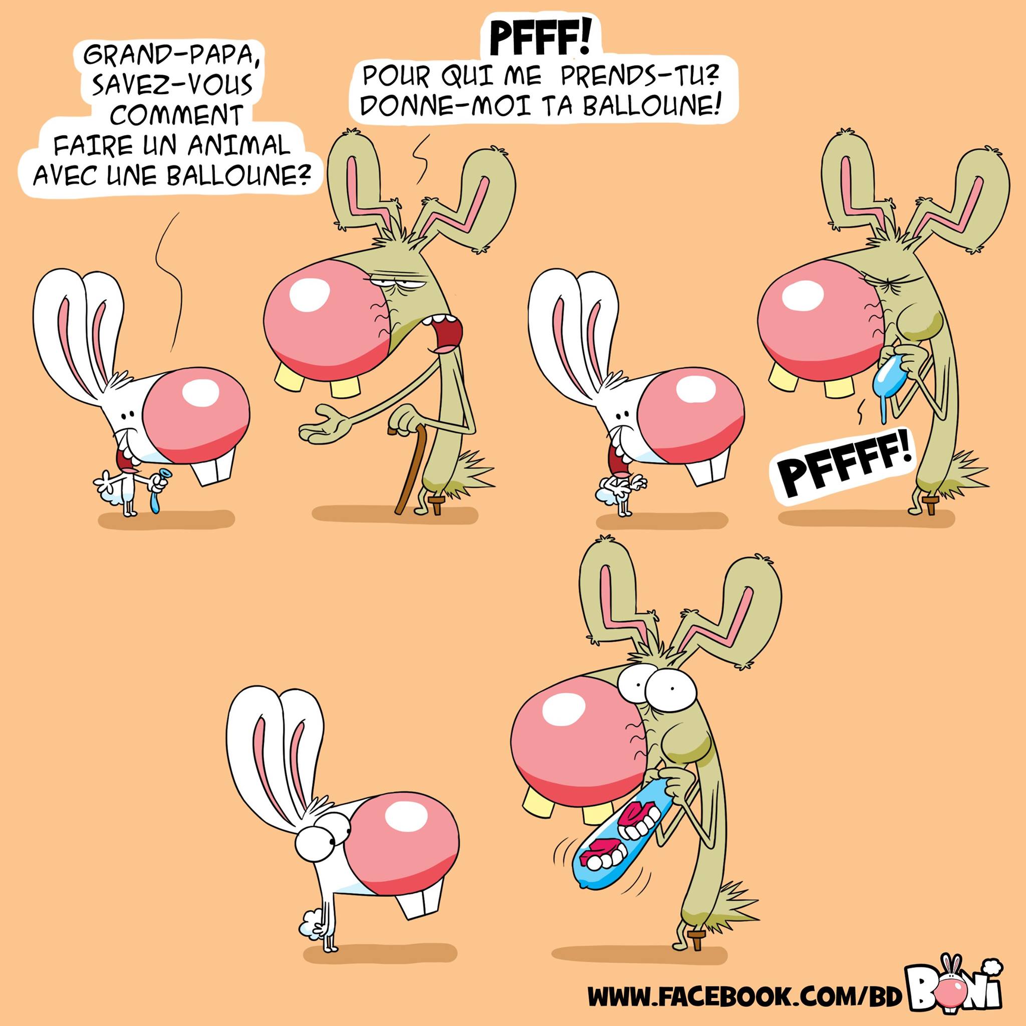 Pour un gag, j’imagine Boni dans une mise en situation avant de me demander comment finir sur une note drôle. Je retourne le problème dans tous les sens.