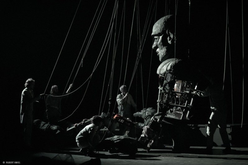Au bout de leurs fils, les marionnettes s’animent, manipulées par des hommes qui leur transmettent comme un souffle de vie. Sans cette manipulation vitale, elles ne sont qu’immobiles et raides. Les comédiens jouent d’ailleurs avec les marionnettes comme si elles étaient de vrais partenaires.Tout dans ce spectacle nous renvoie à notre propre existence, lentement, insidieusement. Les comédiens jouent d’ailleurs avec les marionnettes comme si elles étaient de vrais partenaires. Michael Pietsch est étourdissant dans la manipulation de ces personnages de bois qui sans lui ne seraient rien. Il partage la scène avec Thomas Halle, Gianni La Rocca, Leone François, Bruce Ellison et Alfredo Cañavate, tous excellents dans leurs rôles respectifs.