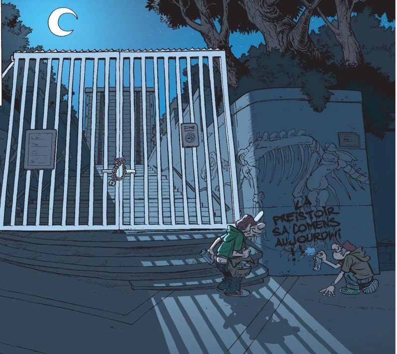 Après Spirou, Mickey et à l’instar de bien des super-héros de comics, Bob et Bobette (ou Suske et Wiske, si vous êtes de l’autre côté de la frontière linguistique) s’offrent d’autres regards dans une collection « vu par », associant un scénariste avec un dessinateur pour attirer les deux personnages de Willy Vandersteen (et de son studio) à eux, dans des histoires plus personnelles. Sans les dénaturer ? C’est là tout le défi, amplement réussi par Yann et Gerben Valkema (qui avait un coup d’avance puisqu’il avait déjà dessiné un Bob et Bobette, inédit en français) qui lance la série en fanfare et en préhistoire.