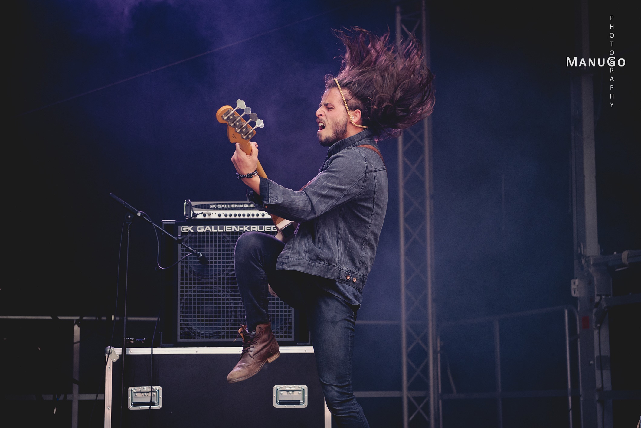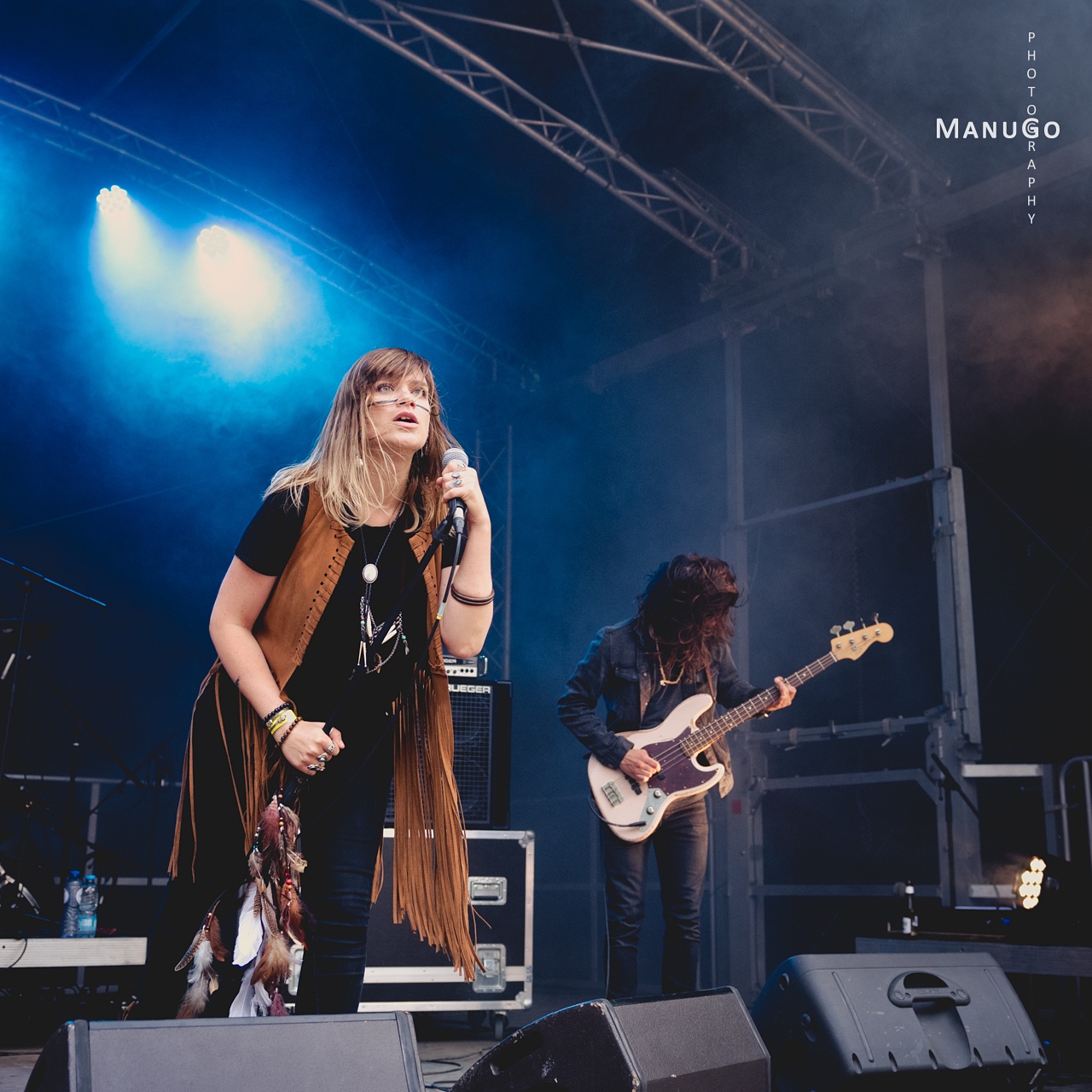 Leur univers rock alternatif s’apparente à un mélange de Janis Joplin, Jack White, Anouk, Nirvana ou encore Queens Of The Stone Age. Sur scène, ça déménage. Je me régale sous l’objectif de mon reflex car je sais que les chevelures vont virevolter dans tous les sens et que cela donne de chouettes clichés. Loïc, surtout, garde cette belle et longue chevelure abondante.