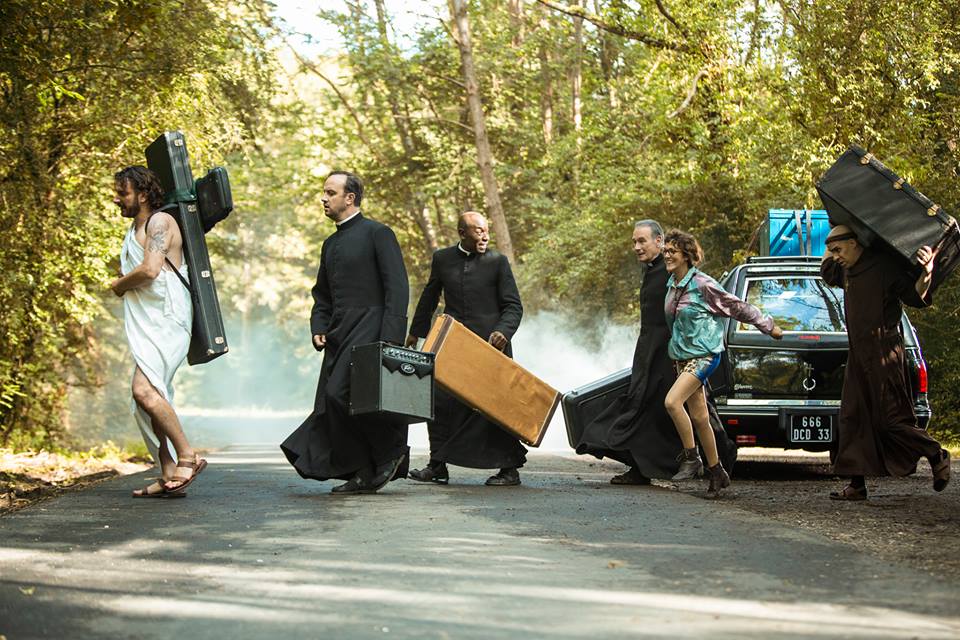 Les soutanes ont le vent en poupe. Scénariste des films de la bande à Fifi, Pierre Dudan continue sur la lancée de films comme Coexister (plutôt que Des hommes et des dieux) pour livrer un premier film sur fond de religion et de Rock Attitude. Le film sort ce 22 août mais on vous offre déjà des places car nous venons de nouer un chouette partenariat avec Distri7, le distributeur belge du vénérable Au Poste, de Tamara 2, de Tout le monde debout ou encore Les dents, pipi et au lit! dernièrement. On a 5X2 places à vous faire gagner si vous acceptez la petite mission qu’on souhaiterait vous faire exécuter. Partants pour entrer dans le band de guitar-chrétien-héros emmené par Michaël Youn, Lucien Jean-Baptiste, Bernard Lecoq, Jarry ou encore Simon Astier et Victoria Bedos en chauffeuse de cette troupe ?