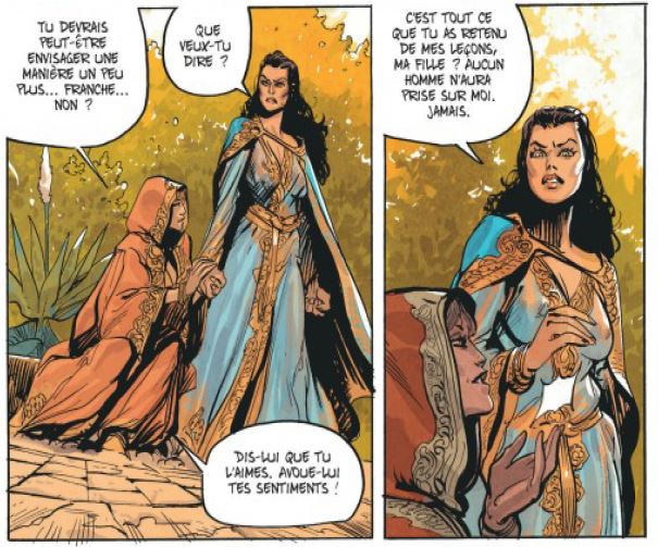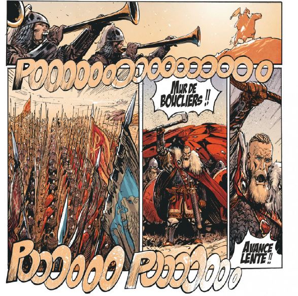 Chaque scènes d’affrontement, ces fresques sur deux planches, est spectaculaire mais ne réussit pas tout à fait à désormais éviter un petit effet de déjà vu. Seul grief à ce flot d’actions encadrées par la politique et… la religion.