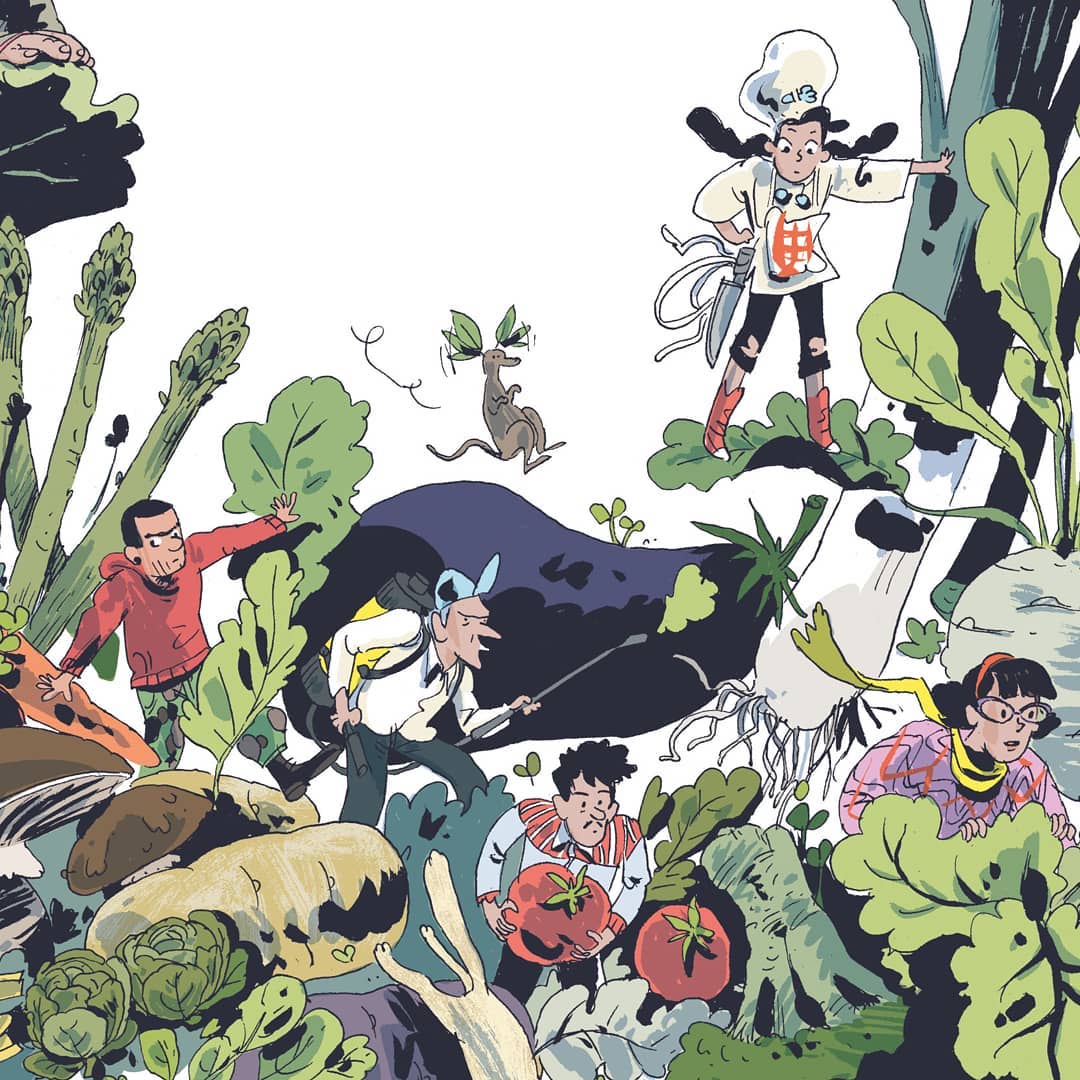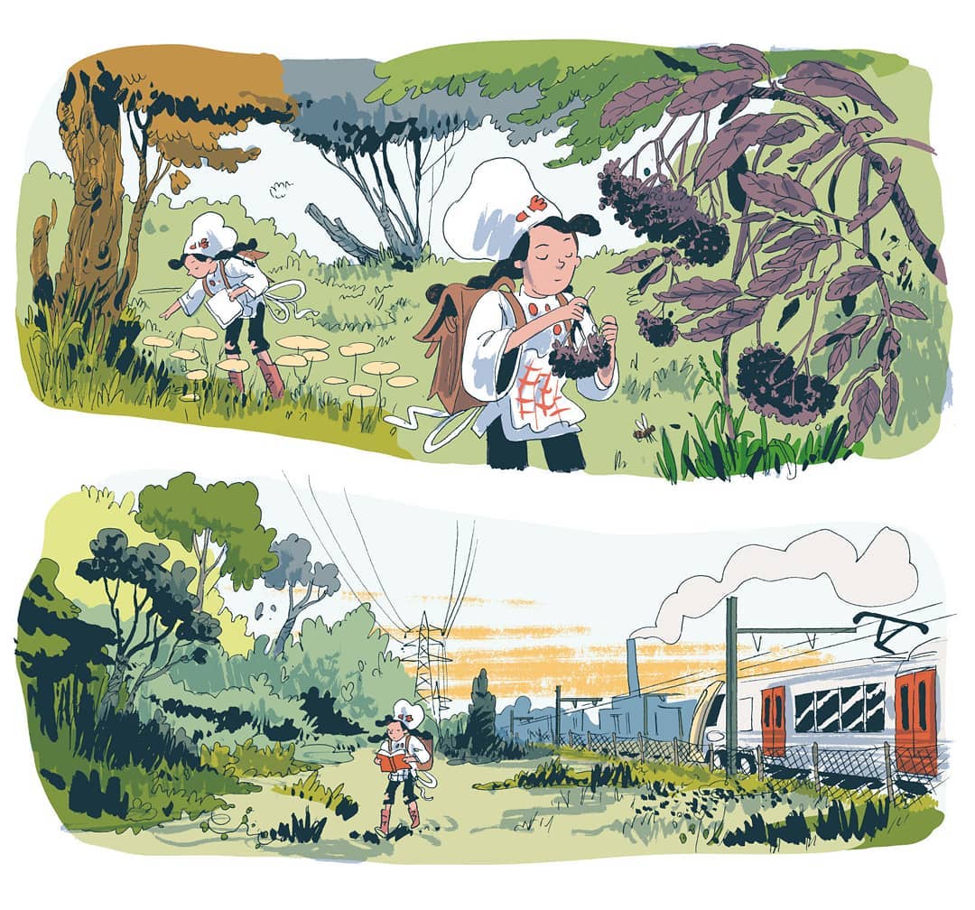 Notamment pour une recette illustrée dans un magazine. Il y a la possibilité de s’en servir pour des livres de jardinage. En faisant cet album, j’ai collectionné des bouquins, sur les herbes sauvages, les jardins sur les toits… Je pense qu’il faut voir au-delà de la BD. Les héros peuvent être réutilisés quand bien même il n’y aurait pas de suite.