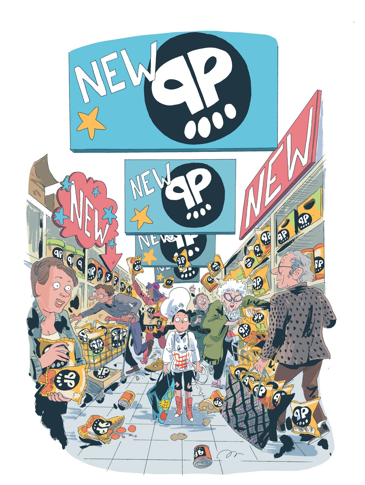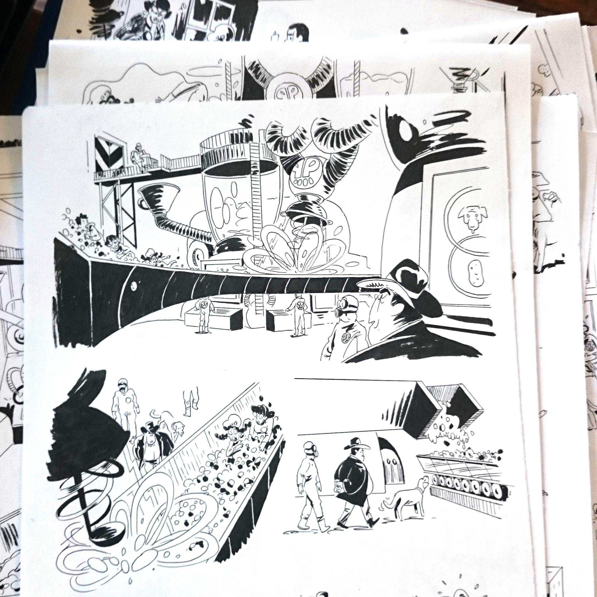 Chut, il ne faut pas trop en dire. Il me fallait un ingrédient secret. J’étais parti sur un champignon, comme Franquin. J’ai changé ensuite. Je voulais témoigner du fait qu’on mange mais qu’en fait, on ne sait pas exactement ce qui se retrouve dans nos assiettes.