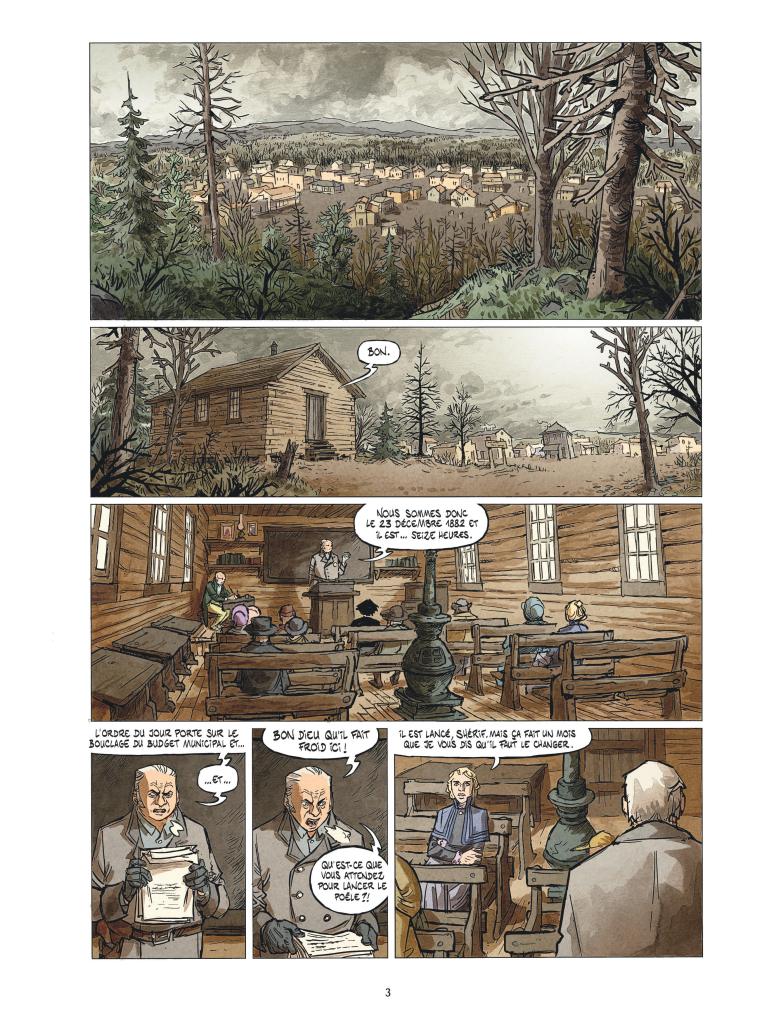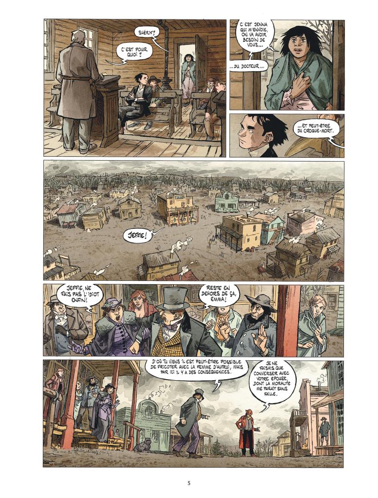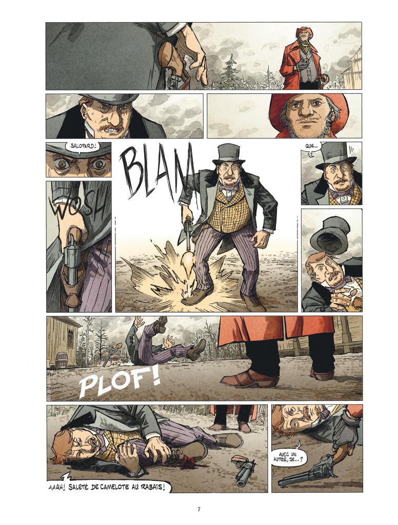 Résumé de l’éditeur : 1856, dans la petite ville de Morrison, le conseil municipal délibère dans la salle d’école sur les affaires courantes et notamment sur le renouvellement du contrat du croque-mort – Stern – dont la place est remise en question. Mais très vite, la réunion est perturbée par la présence en ville d’une fine gâchette, Colorado Cobb, venu… dédicacer son livre de mémoires intitulé « Guns & Women » !