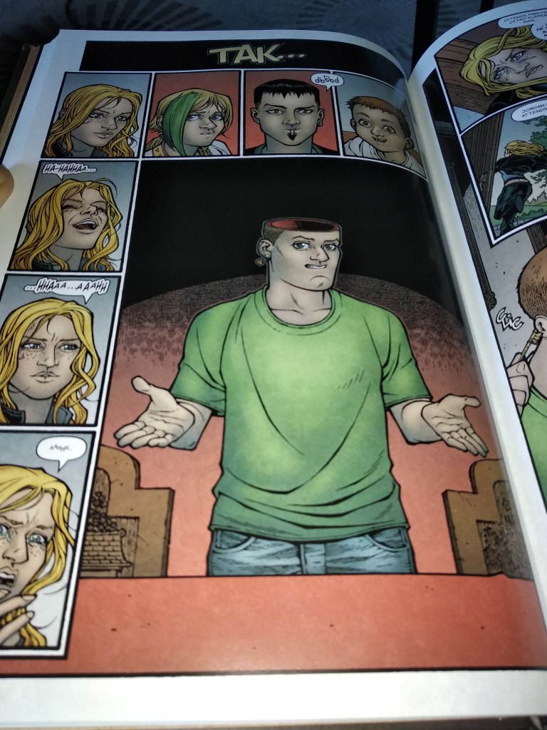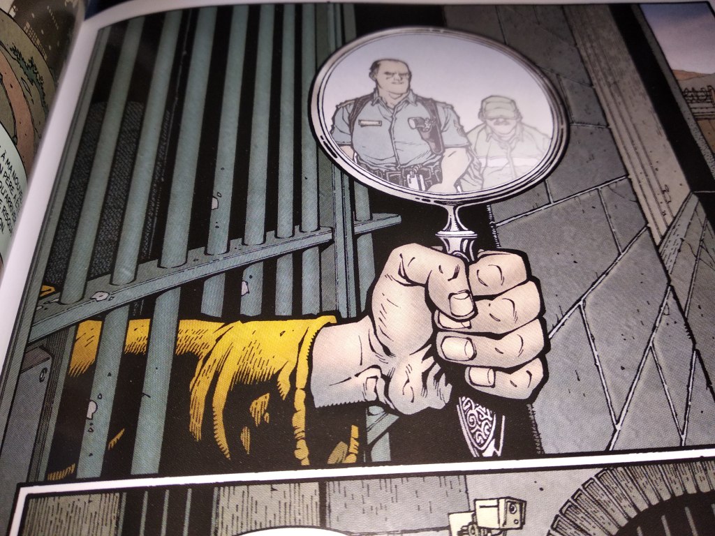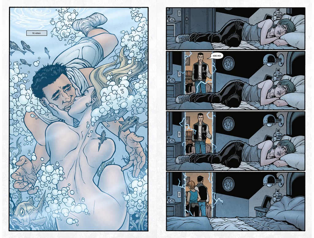 Et tout de suite, il faut survivre au coup d’arrêt. C’est difficile, compliqué de revivre quand on s’est éteint face aux feux de l’enfer sur terre. C’est d’autant plus compliqué que c’est remarquablement retranscrit par Gabriel Rodriguez dont les idées graphiques se fondent dans l’histoire pour la porter, dès le début, dans des compositions remarquables comme ce décor (dans l’antichambre de l’enterrement) mis sur pause le temps d’une planche pour mieux marquer la détresse de Tyler, l’aîné de la fratrie chamboulé par ce meurtre pour lequel il croit avoir une part de responsabilité. Ou cette attitude de Tyler prise à trois moments différents pour, sans un mot, décrire tout le mal-être d’un gamin qui doit déjà devenir adulte, trop tôt, trop vite.