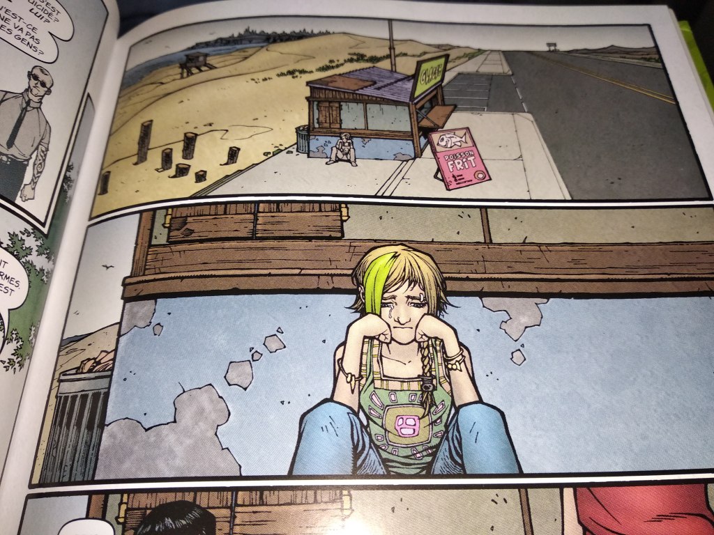 Le dessinateur conjure le principe qui veut qu’il faille toujours varier pour ne pas lasser et joue de répétitions pour renforcer les contrastes, les émotions procurées au lecteur. C’est couillu, à contre-courant, mais ça marche du tonnerre, bien dosé, sans lasser. En quelques cases, quelques planches, tous les voyants sont au vert et Rodriguez, quelque part entre Backderf et un dessin tour à tour rond (pour les héros) et anguleux pour les protagonistes plus borderlines), est comme un poison dans l’eau, qui ne va pas tarder à se répandre et attend son heure au fond d’un puits. Difficile de repartir à zéro quand le passé fait des ricochets.