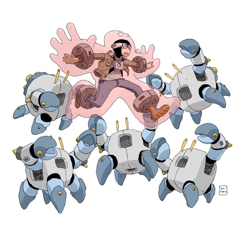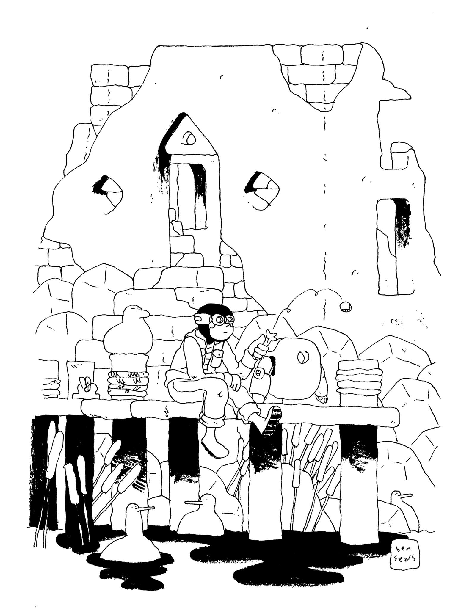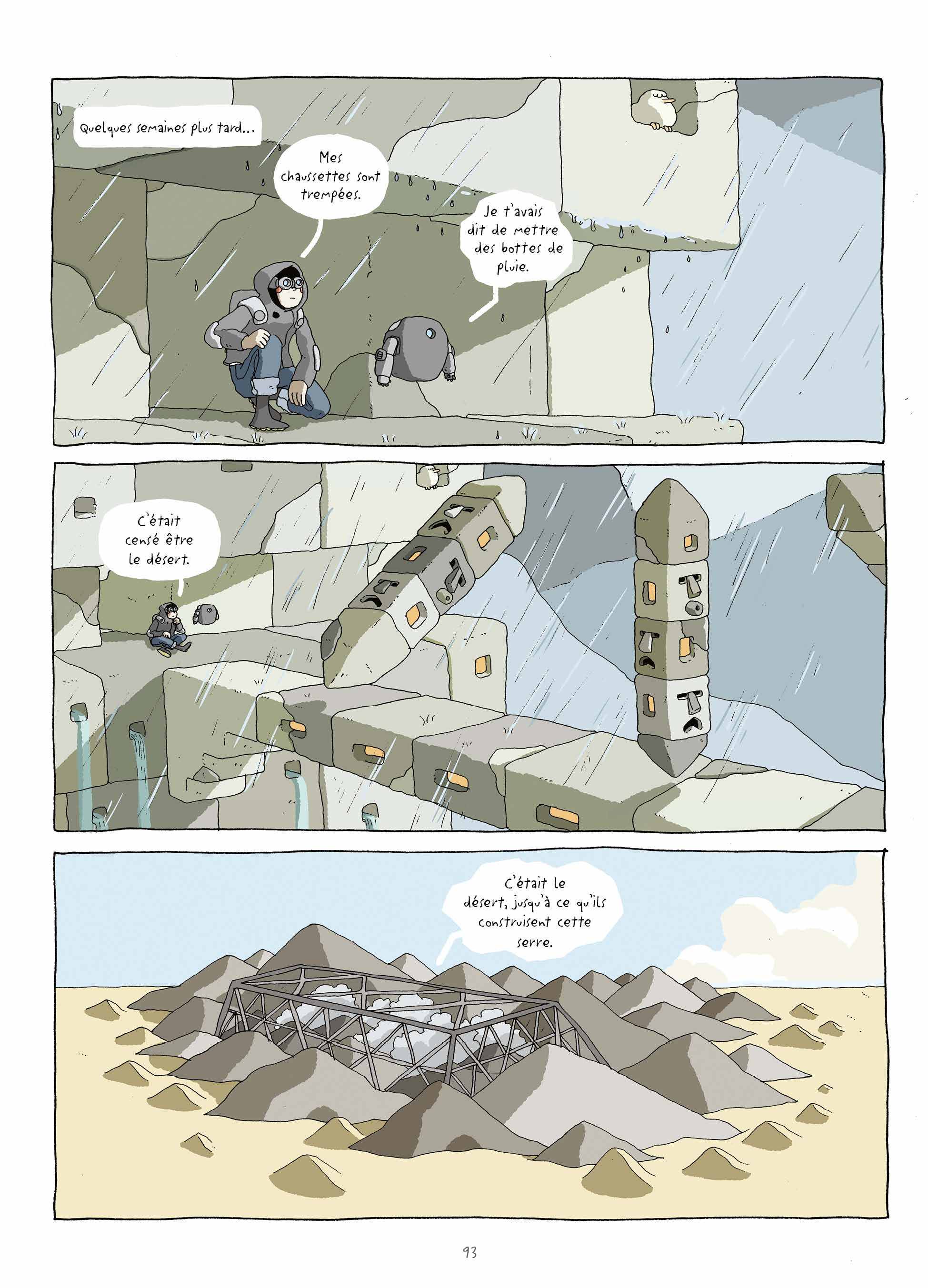 Puisque tout ne doit pas être à portée des jeunes pousses, que la difficulté est aussi faite pour élever les enfants, Volcano Trash est sans doute le choix le moins évident de Kinaye, le plus audacieux tant l’univers graphique de Ben Sears est moins accessible, peut-être plus subtil, que dans les trois autres ouvrages proposés. C’est un Indiana Jones urbain qui a rencontré Ludo (pour ceux qui se souviennent de cette superbe série de Lapière, Bailly et Mathy) et un peu du Villevermine de Julien Lambert (on vous le redit, on l’adore) dans un univers architectural poussé et un peu surréaliste.