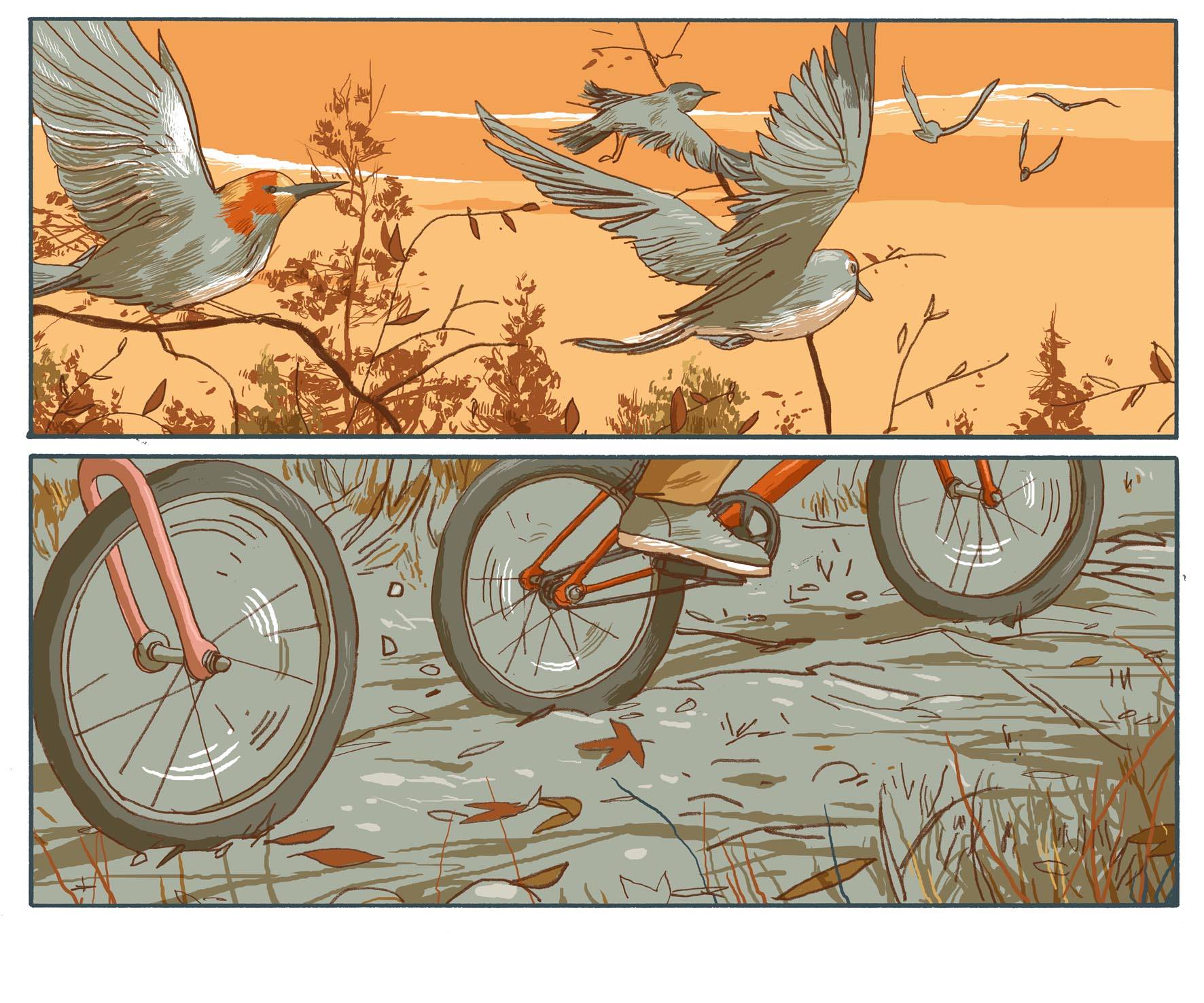 Glissant du fantastique et de l’extatique vers des préoccupations plus réalistes et écologiques, les deux auteurs réussissent un formidable outil (petit guide DIY à découvrir en fin d’album), d’une beauté géniale (avec des animaux et des décors, les amis!!!) et imaginative. L’esprit, pas celui qu’on croit, est frappeur. Frappant.