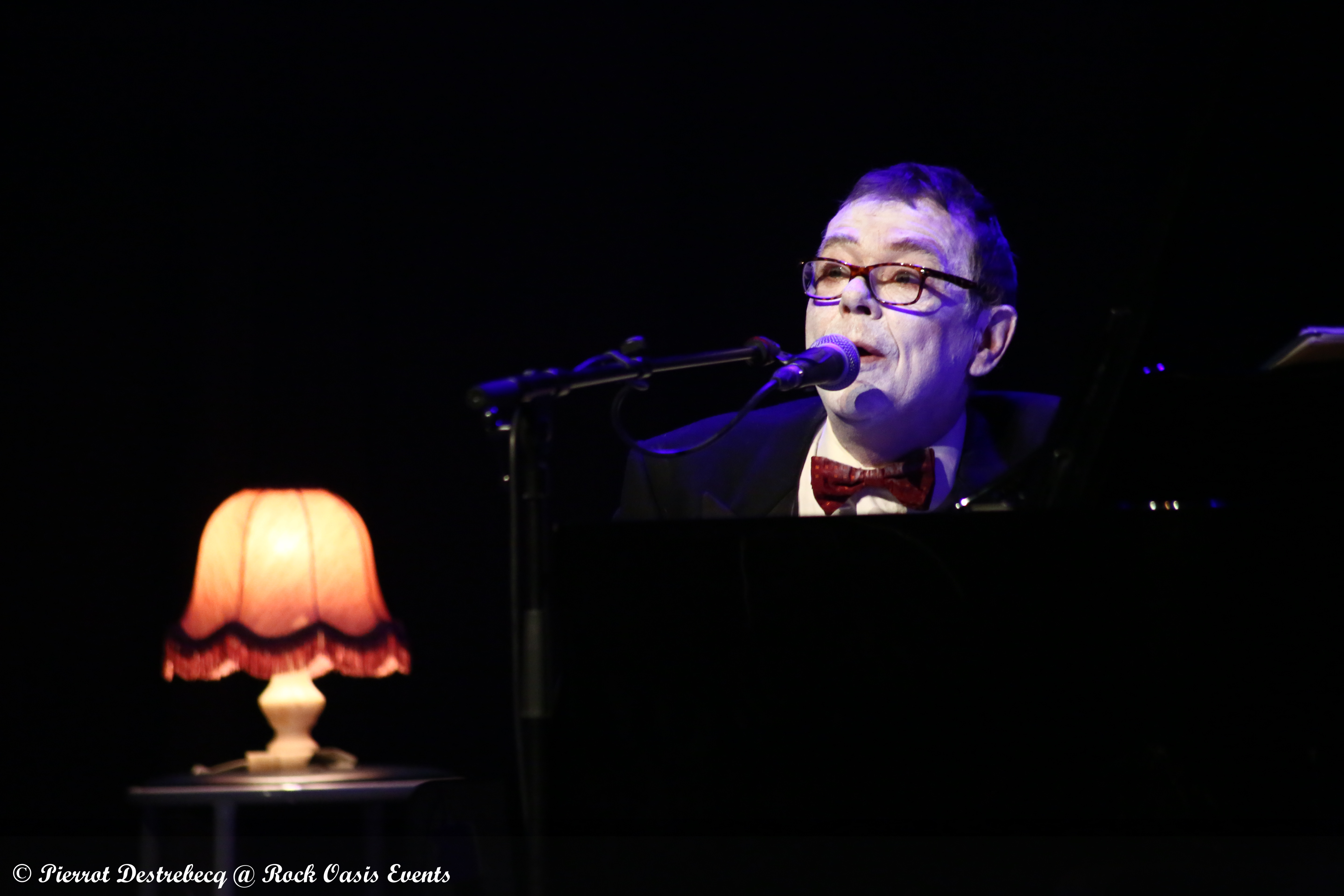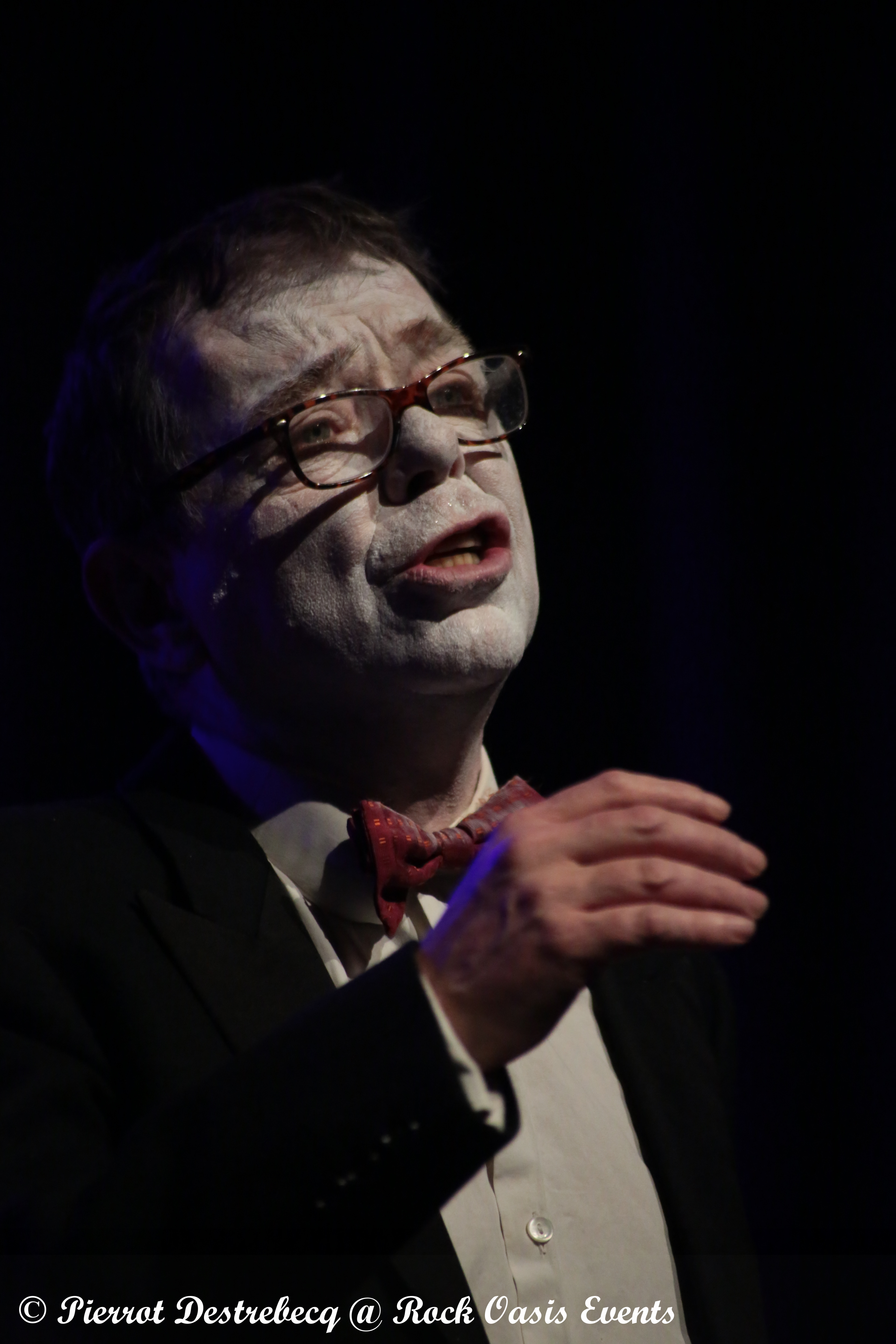 Le premier titre s’achève, et voilà qu’apparait dans la lumière un Dider Odieu blafard sous son maquillage tout en blancheur, les yeux cernés, habillé d’une queue-de-pie et arborant le sourire éclatant d’une personne heureuse d’être là.