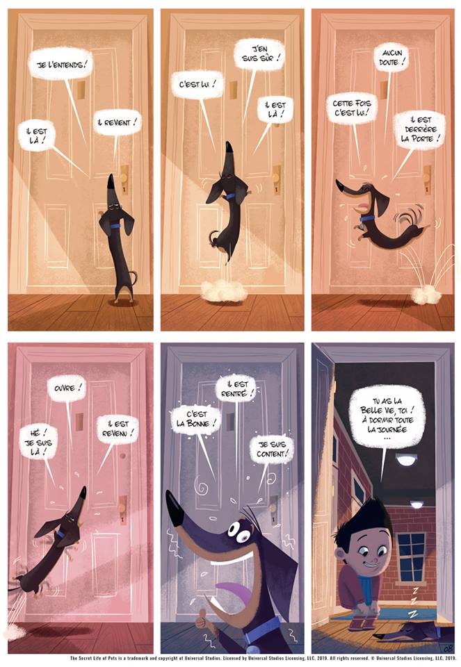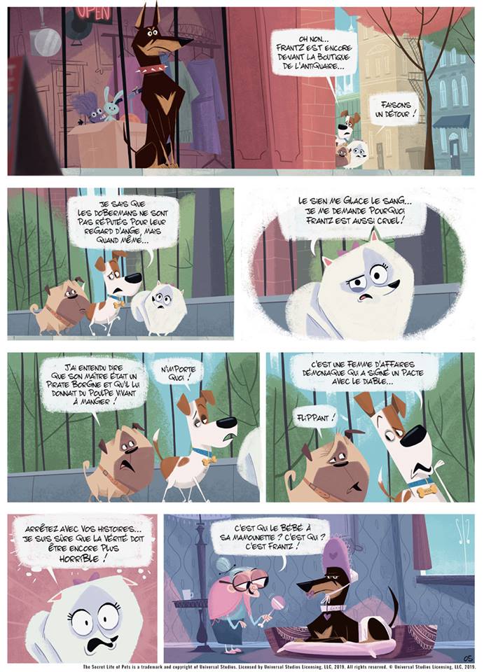 Lapuss’ : Je signais déjà Les Minions, dont j’étais déjà content de m’occuper, pour Dupuis quand on me l’a proposé. J’étais partant, mais j’ai accepté avant d’avoir vu le film. La bande-annonce en donnait une certaine idée… faussée. Je pensais que les animaux resteraient muets. J’avais déjà réfléchi au truc avant de me rendre compte que, non, ils parlaient.