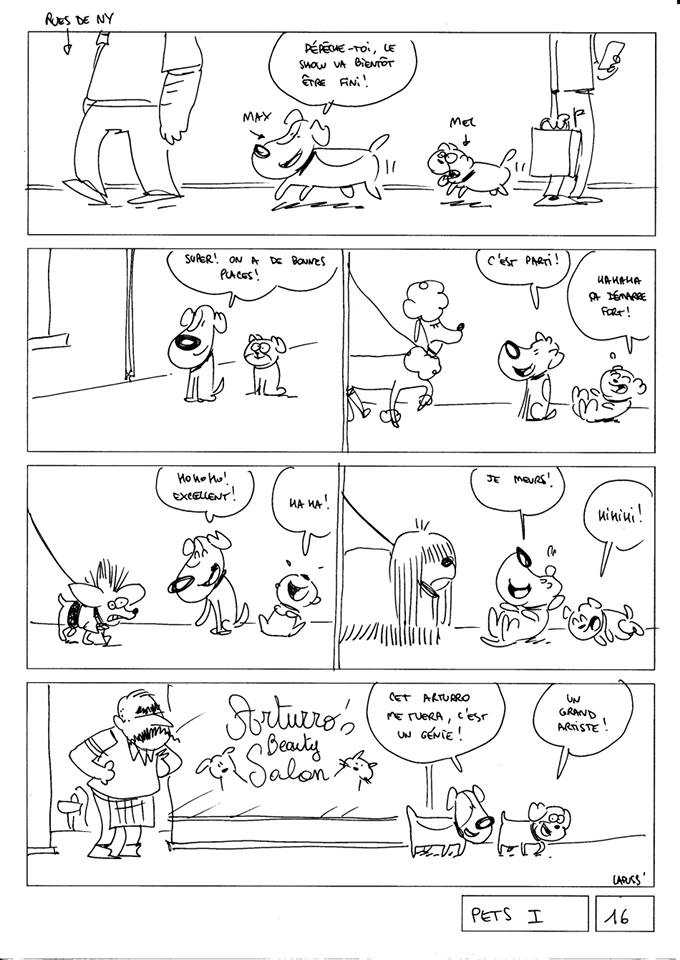 Lapuss’ : Oui, par l’intermédiaire de Putain de Chat mais aussi du Piou. D’ailleurs avec Baba et Tartuff, nous en avons récupéré les droits. Nous planchons sur la suite, à notre rythme comme aucun éditeur n’est de la partie, pour l’instant. J’aime les animaux car ils sont plus expressifs. Baba est un spécialiste dans les caricatures qu’il arrive à leur faire faire.