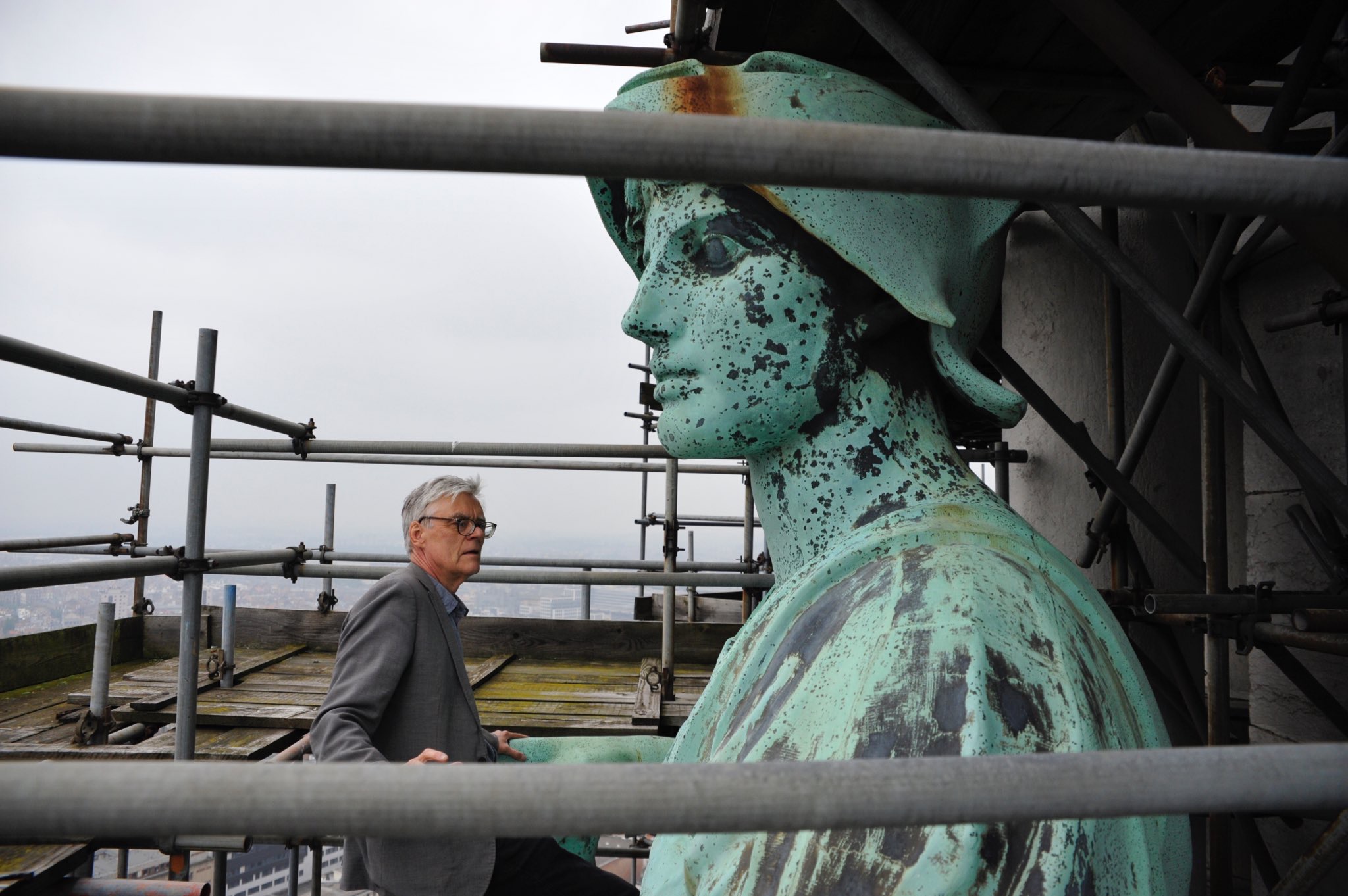 Ce qui était très excitant, c’était de mettre ce projet à aujourd’hui, de parler de notre monde, des échafaudages autour du palais de justice. On ne remerciera jamais assez les politiques qui ont autorisé pendant des années et des années que ces échafaudages restent, s’incrustent même. On voit ainsi le travail magnifique qui a été fait pour protéger notre ville.