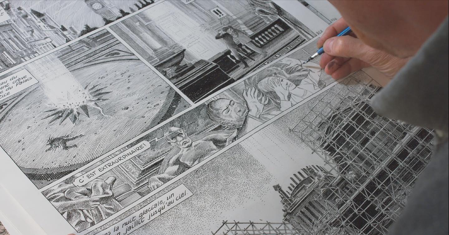 François : C’est pour ça que je me suis bien entouré, j’ai fait appel à des amis. À quatre, on est moins seuls, moins effrayés. Ce fut une très longue aventure, près de quatre ans, mais elle fut joyeuse. Chacun y mettait ses rêves, ses souvenirs. De Blake et Mortimer, de Bruxelles aussi, mais également de ce que peut représenter et être l’aventure à notre époque.