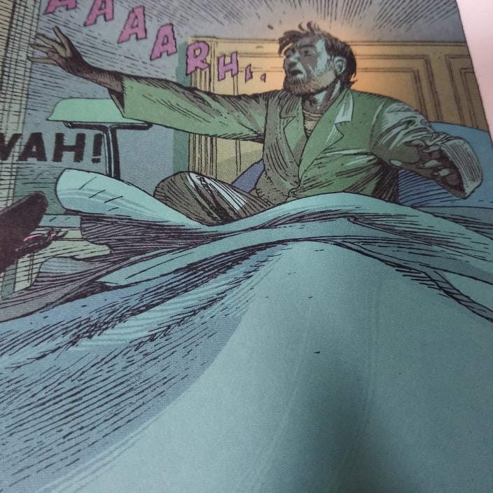Laurent : Oui, et c’était important qu’au moment où Mortimer se réveille, il y ait encore un peu de la couleur du rêve qui se dissipe. La narration, c’est ça.