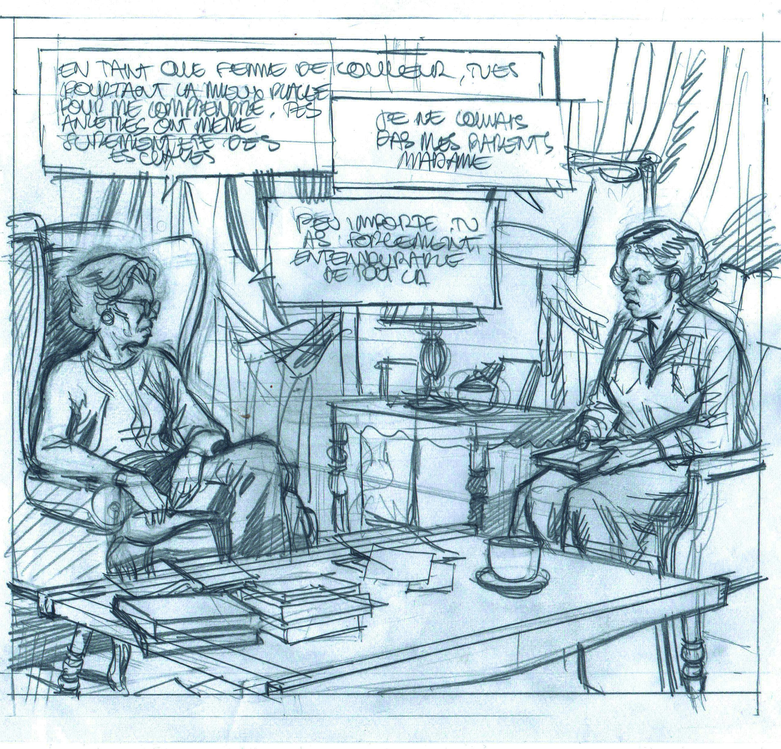 Léa : C’est un bon point de vue narratif puis ça nous permettait de développer la relation de cette matriarche et sa bonne de couleur. Ce n’est pas anodin.