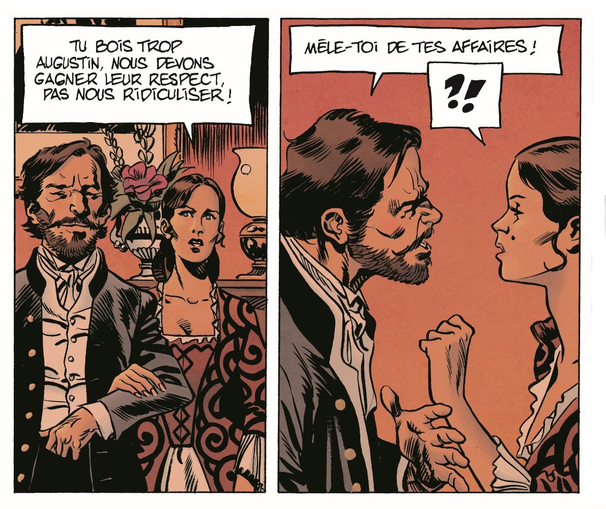Gontran : C’était notre crainte que les gens communiquent sur cet aspect des choses. Non, notre histoire se passe soixante ans avant et n’est pas romantique du tout. Ce n’est pas un anti-Autant en emporte le vent, pour la cause. Quoique… Toujours est-il que l’histoire que nous racontons n’est pas du tout semblable. Mais j’ai l’impression que faire des comparaisons, ça rassure les gens.