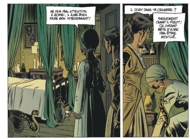 Léa : Il fallait d’ailleurs que nous essayions de nous détacher de tout ce qu’on a pu voir. Nous nous sommes interdits de verser dans le cliché, comme la scène où un esclave est fouetté à sang. Cet album n’en est d’ailleurs pas un sur l’esclavage. Nous nous sommes rendu compte que, peut-être, le pitch laissait trop présager ce genre d’histoire. Ce n’est pas le cas. Dans un pitch, nous ne pouvons pas expliquer toute l’histoire.