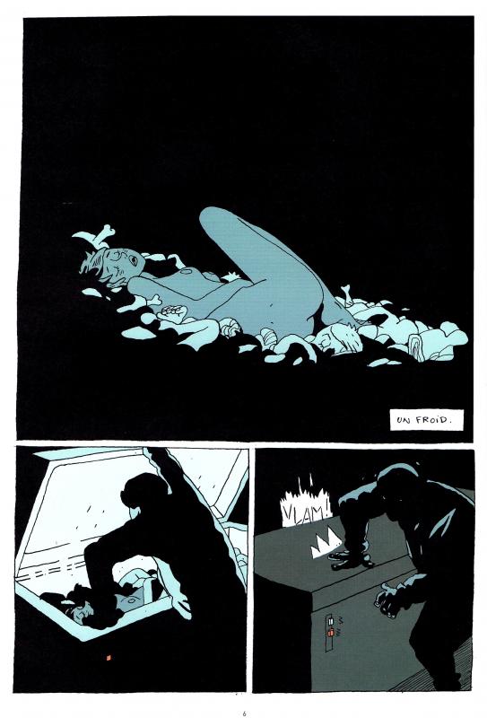 Et tant pis si la nouvelle couverture est beaucoup moins impactante que la première; le trait de Marion Mousse (qui est en fait un… homme, Pierrick Pailharet) reste totalement lisible et dynamique, et les nuances bleutées qui rajoutent au noir et blanc, alimentent l’angoisse de ce récit qui nous scotche jusqu’à la dernière case. Quand l’humour et le comportement en dilettante tombent pour faire place à l’horreur la plus simple, la plus sournoise. Celle qui se cache derrière les lauriers et les honneurs, le premier final feel good, comme façade aux affres les plus innommables. Quand l’affaire s’échappe et que son instigatrice se retrouve victime.