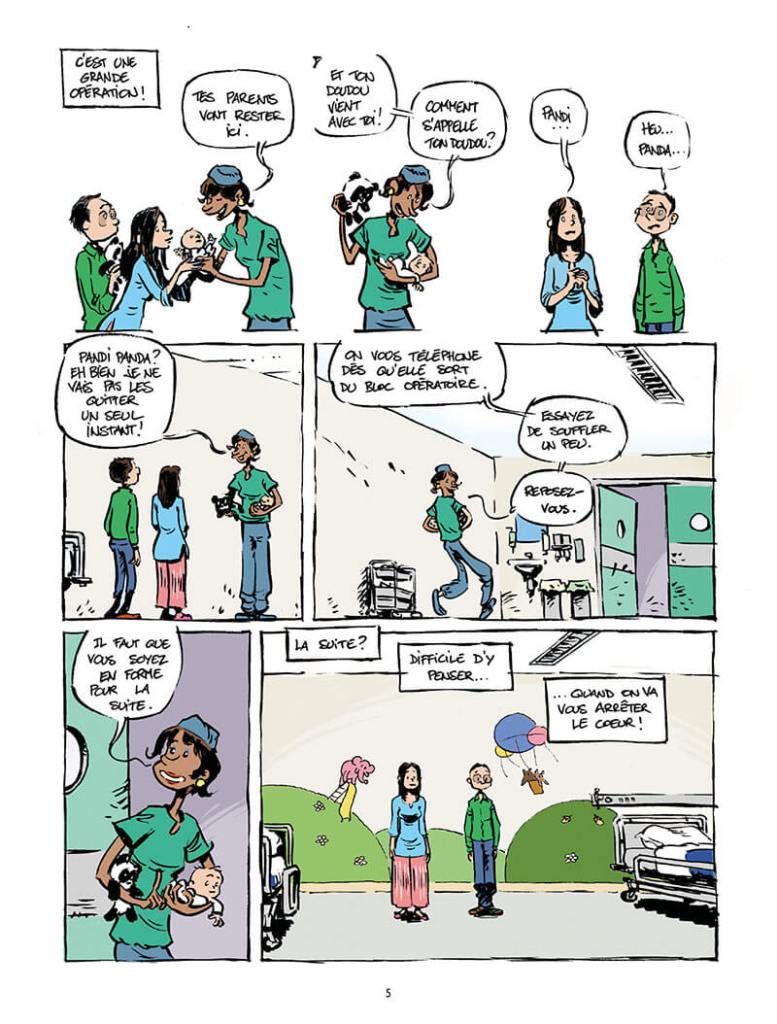 Et comme je l’indique dans la bd, c’est librement autobiographique. J’ai beaucoup gardé. Je me suis inspiré de ce que l’on a vécu pour dérouler le fil de cette histoire car je n’ai jamais dévié de mon objectif principal, parler de la sécu.