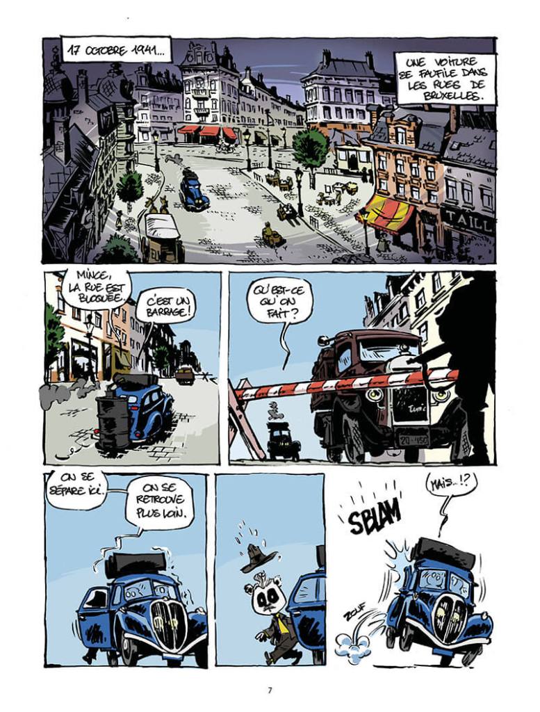 Le plus gros du travail de cette bd a été de la recherche. J’ai rencontré Guy Vanthemsche, le spécialiste de la question sociale en Belgique, qui m’a éclairé sur le sujet. J’ai énormément lu, et j’ai retrouvé le dernier témoin vivant de cette fameuse réunion du 17 octobre 1941 à Ohain, Claire, qui apparaît dans la bd. C’est un vrai travail de documentation. En lisant cette bd, le lecteur va apprendre une partie passionnante de l’histoire sociale de Belgique.
