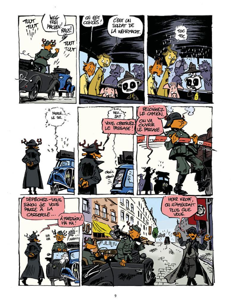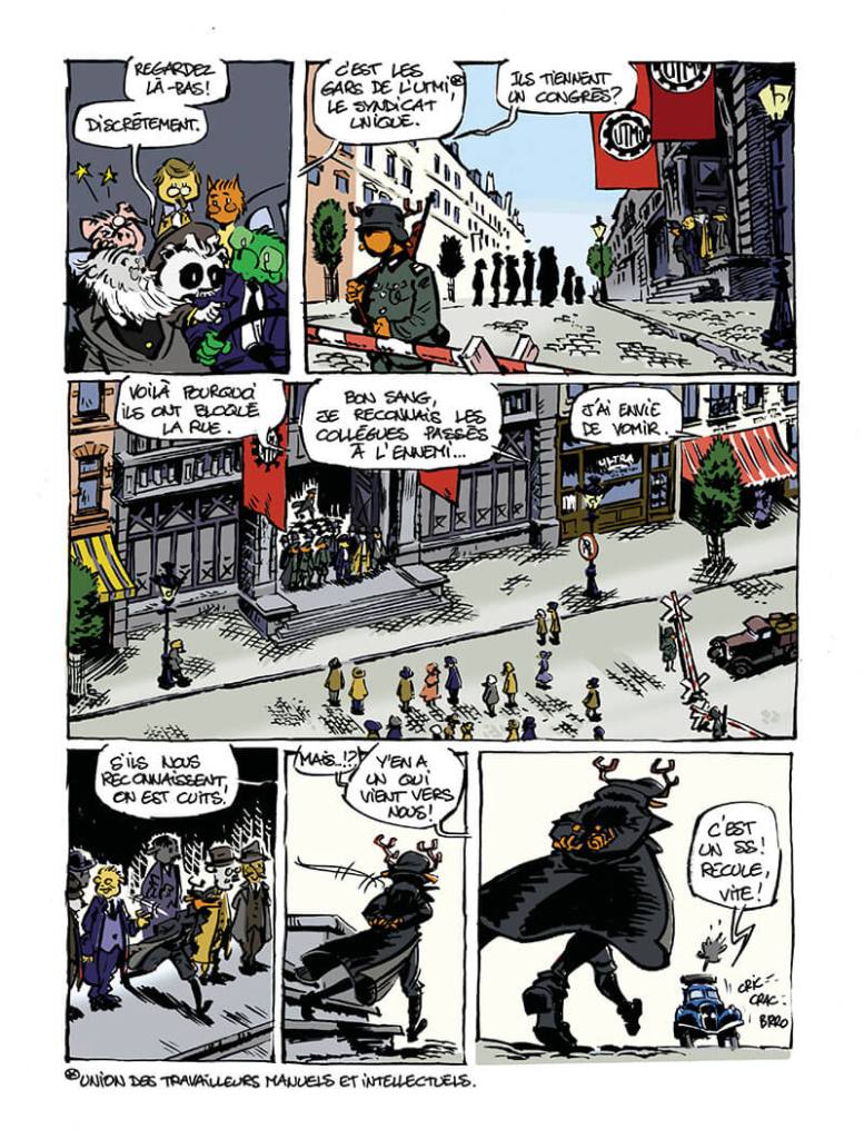 Très simplement, j’étais pressé, j’ai passé tellement de temps sur la recherche et le scénario que j’ai tranché rapidement toutes les questions graphiques. Le nom de l’animal correspond à la première lettre du nom du personnage, Henri Fuss c’est un Furet, Henri Bondas, c’est un Blaireau, etc. Je me suis quand même très fortement inspiré des photos des personnages.
